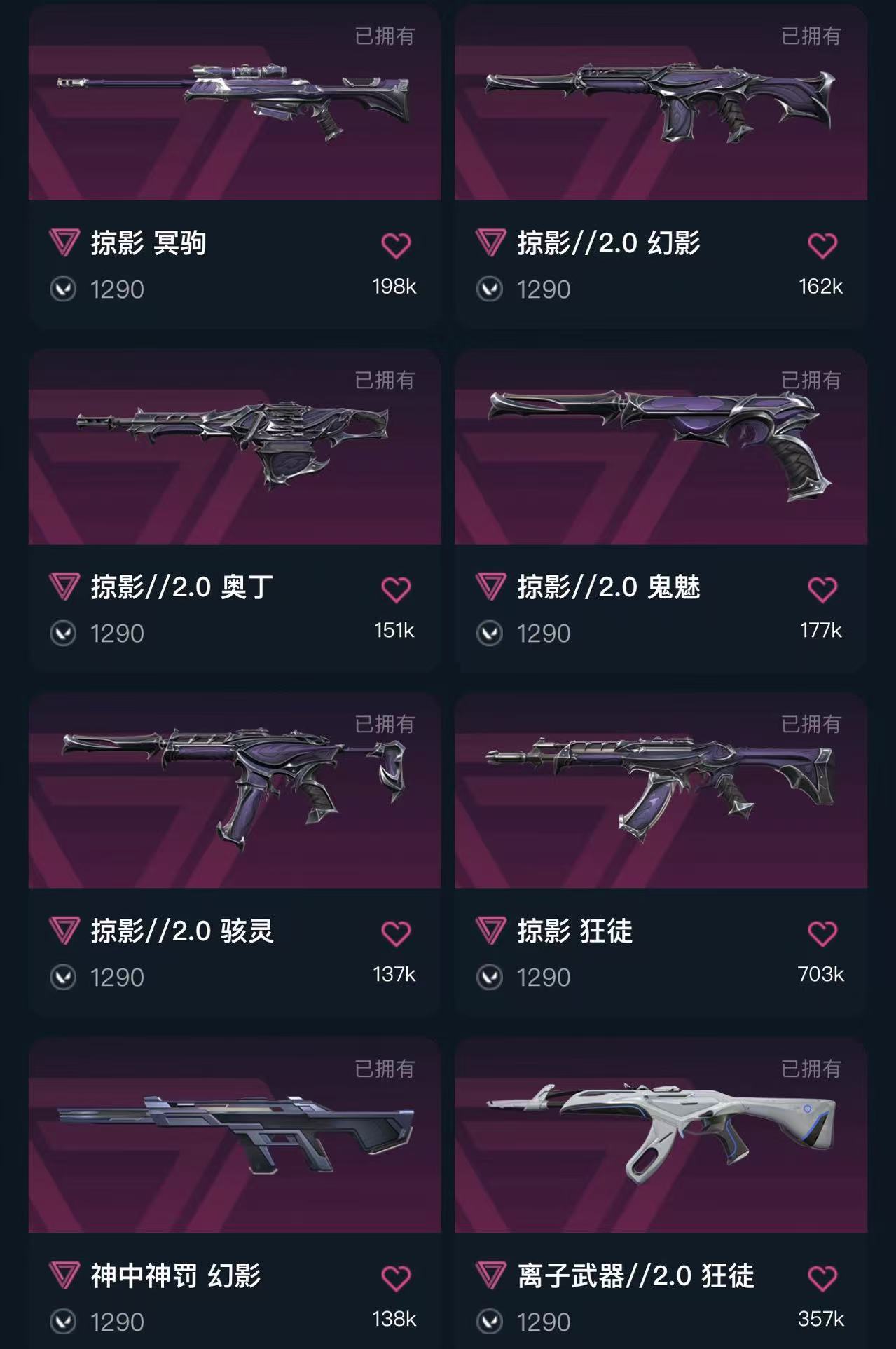 冻结秒解✨可排✨掠影2.0套✨滋滋特攻队狂徒✨影钩✨毁灭骑士正义✨奇点2.0狂徒✨神中神罚幻影✨