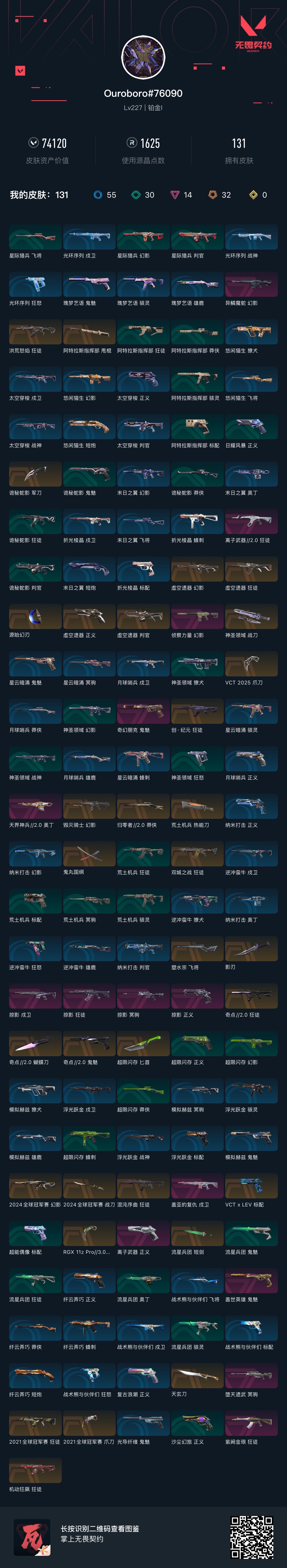 禁止排位30杀 因为会默认炸鱼封号,如果对局排位超过30杀我们商家这边会直接挤号,看清楚文字再去租礼貌租号!禁止炸鱼!禁止开挂!如果发现有违规行为一定追究到底我们会向平台要您的实名进行律师起诉 出现冻结,等几分钟重新登陆,会自助解冻郑重声明: ! !! ! !因无畏契约检测严格,为防止后台插件导致封号, 请务必重启电脑! ! ! !本人商户多年,所属账号已在派出所备案,若出现账号封禁/毁号等情况,会马上与平台联系,平 台会报警处理!请租客文明游戏,不要开挂或挂机! 1.登陆界面稍等2分钟会.上去(自动登录)老板不要着急,一次不行多.来几次wegame界面要耐心等2分钟2.密令会自动输入如果一次不成功多来几次3..进入wegame后到弹短信验证处,关闭掉,重新下载无畏契约这个游戏即可成功上号,记住。这个方法百分百.上号成功!就是进入wegame重新下载无畏契约游戏 ! ! !百分百成功! ! 4.请及时续租不要挂机,到时不下线,但是下一个会挤号导致挂机,所以请及时续租,导致禁赛的一律拉黑5.祝老板玩的愉快,喜欢可以收藏关注;VCT 2025 爪刀,虚空遗器 狂徒,掠影 戍卫,洪荒怒焰 狂徒,掠影 狂徒,异鳞魔蛇 幻影,侦察力量 幻影,