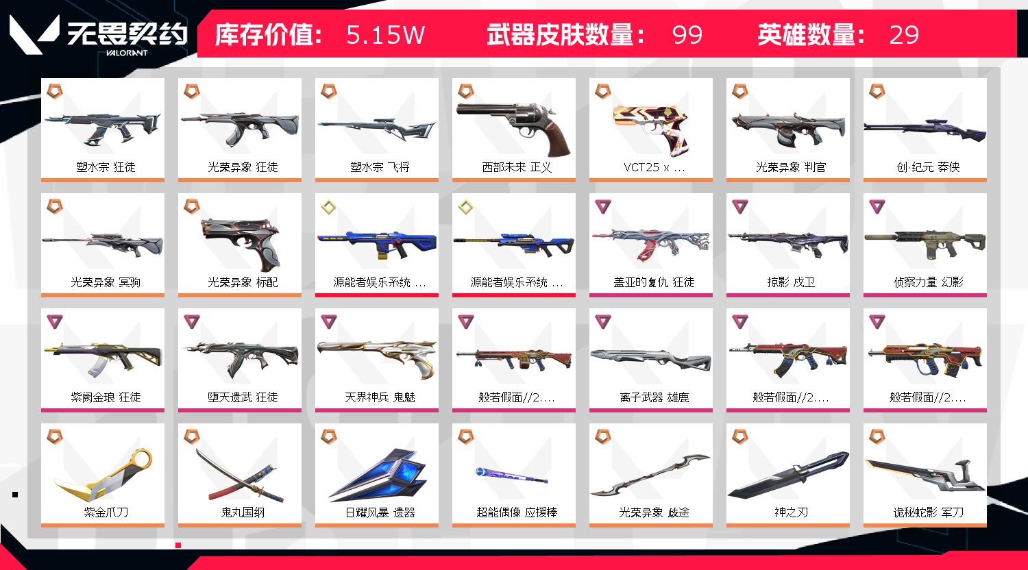 • 武器皮肤数量: 99