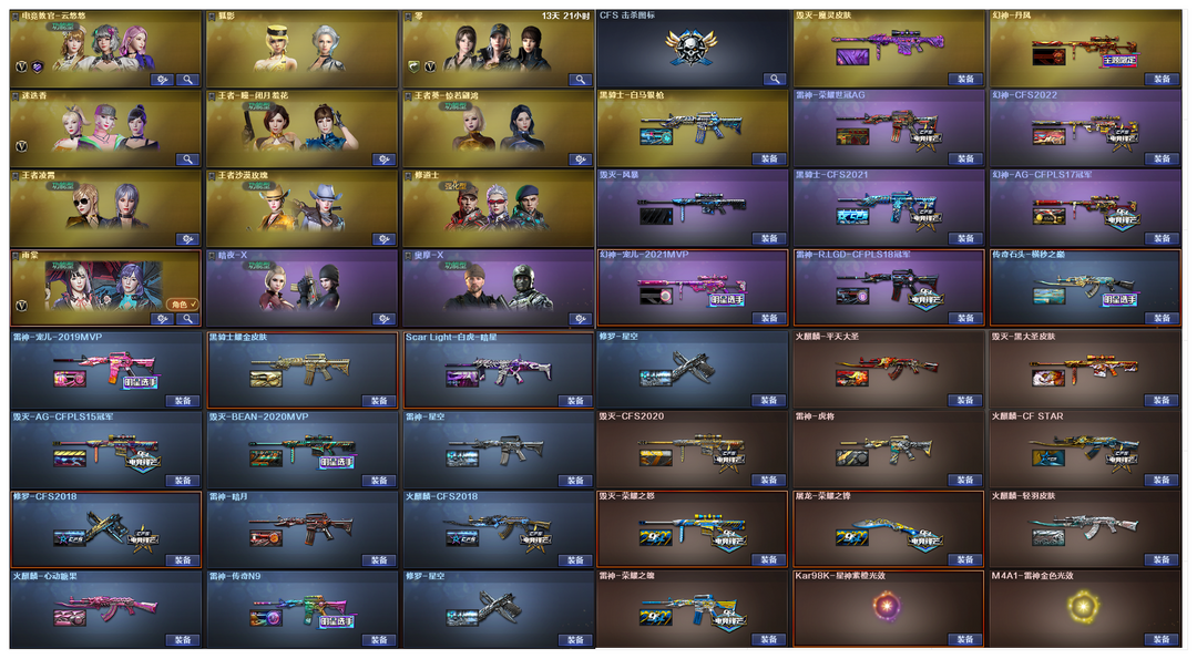 幻神4皮宠儿丹凤AG皮幻神卡⭐3传说⭐手枪满配⭐双白虎⭐98K星神⭐竞技荣光套世冠套⭐6盘6烈蝴蝶;USP-雷暴,荣耀世冠-柯尔特,电竞教官-云悠悠,王者沙漠玫瑰,RPK-盘龙,QBZ03-金色蔷薇,M200-幻神,