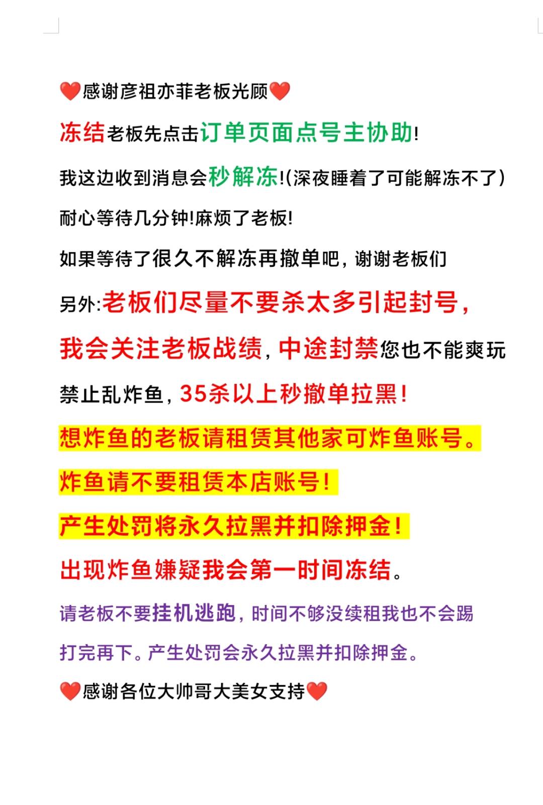 郑重声明: !!!!!因无畏契约检测严格,为防止后台插件导致封号,不要在后台挂插件或者驱动!!!!.。 请不要挂机,如果上号看到正在打,麻烦帮忙打完这一把,谢谢🙏🏻 1,本人所属账号已在本地公安备案,若出现账号封禁/毁号等情况,会保留证据以毁坏他人财产起诉追偿,请租客文明游戏,不要开挂或挂机! 2,若出现游戏内账号冻结,【查看wegame私信】,并在登号客户端订单页中找到该笔订单点击【解除冻结】后,再次点击【开始游戏】即可,或者等两分钟看到了会解,未解冻再撤单~谢谢❤️❤️ 3,快到时间老板们注意『及时结束』,打打『娱乐模式』或者 『续费』。🙏🏻不要挂机,挂机封排位,,导致禁赛的一律 拉黑 !并向客服投诉!不要开挂,开挂平台 会 检 测 自 动 完 单。 4,上不去号就把鼠标放在令牌输入的地方,密令会自动输入如果一次不成功多来几次。登陆界面稍等2分钟会上去(自动登录)老板不要着急。 5,假如登录不上去,可能是登录器有问题,可以多试几次不要着急撤单,上不去号的重启上号器,多重启几次谢谢。 6,开挂必起诉追究,不拿到赔偿不罢休!✊ 祝老板们玩的开心,喜欢请收藏❤️❤️❤️❤️❤️;离火刃,紫金爪刀,剥皮小刀,威龙之刃,VCT 2025 爪刀,天界神兵//2.0 幻影,归零者 獠犬,