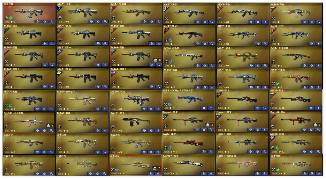幻神宠儿皮⭐幻兽5套⭐传说光耀⭐98K星神王者幻神⭐雷霆夜魔套⭐手枪满配⭐6盘6烈满刀满雷⭐6音效卡;RPK-盘龙,QBZ03-金色蔷薇,M200-幻神,Kar98K-星神,