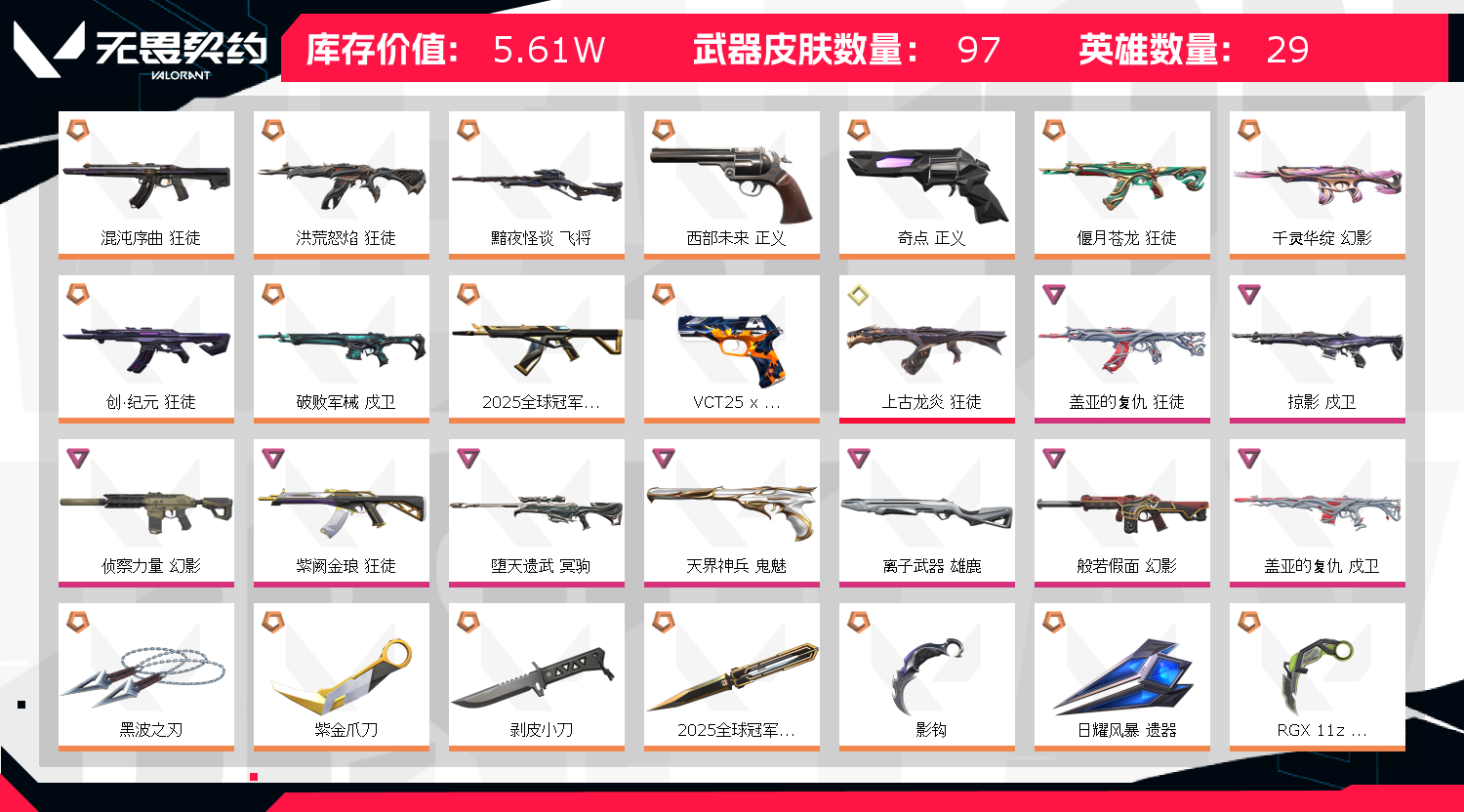 • 武器皮肤数量: 97