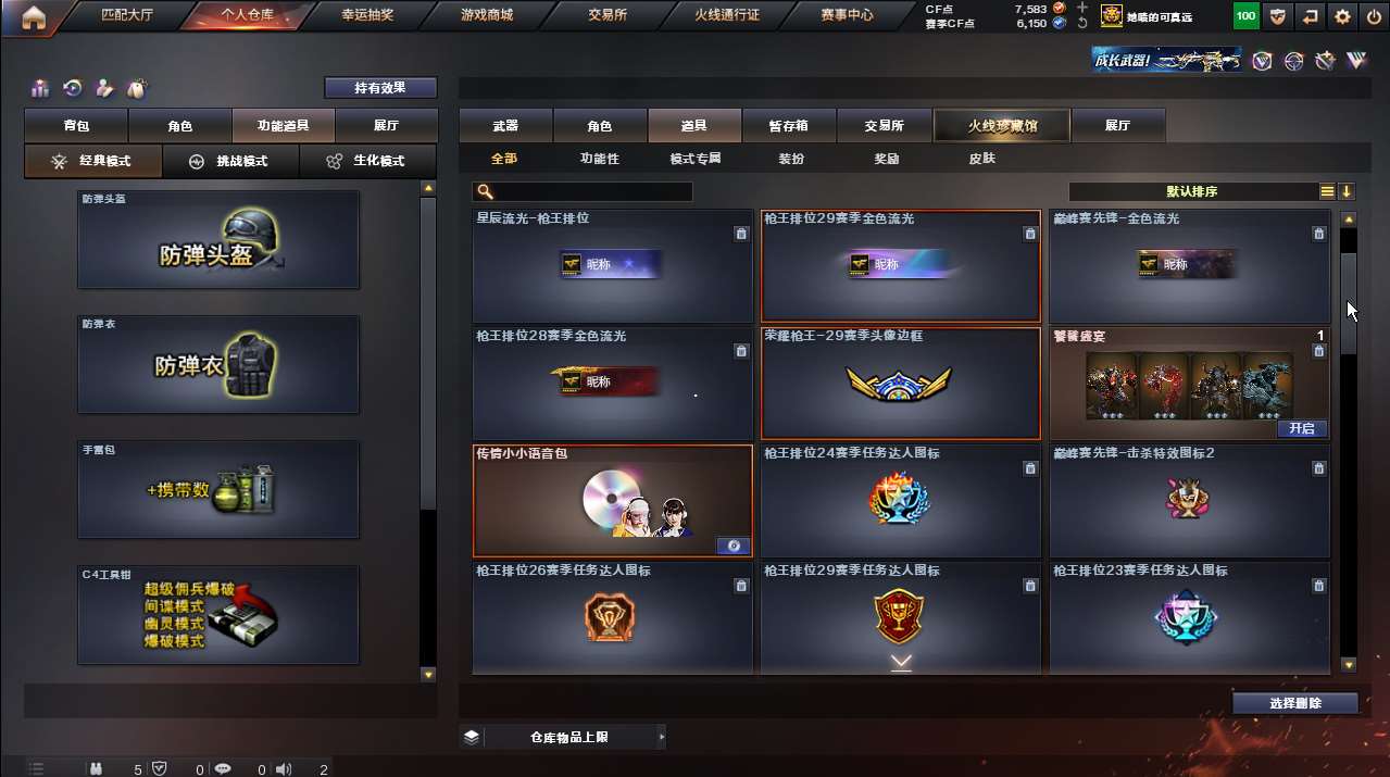 传说艾莉莎》《传说梦魇》《传说夜影》《传说暗裔》《m200幻神➕幻神冠军之幻➕幻神动感闪耀》《裁决➕裁决音效卡》《m200竞技荣光》《王者雷怒》《王者之怒》《竞技荣光套》《cop雷霆 usp雷暴 柯尔特竞技荣光 usp神工天巧 世冠柯尔特》《炽芒蝶刃 冠军小刀》《王者霜心》《王者风势》《王者凤吟》《白虎之魄》《王者之幻/心/武》《qbz金色蔷薇》《qbz天罚》《朱雀》《青龙》《毁灭》《火麒麟》《黑龙》《雷神》《黑骑士》《黑武士》《2盘龙 2炼狱 6烈龙 异变清道夫》《裁决雪莉杨 毁灭孙三炮》《炼狱迷你小钢》《金刚伞》《金刚伞电玩红兔》《云悠悠 晴雅 王者葵貂蝉 王者零国色天香》《黑骑士音效卡 火麒麟音效卡 金色蔷薇音效卡 毁灭音效卡 烈火动感闪耀音效卡》《雷神机甲刑天 黑龙冠军之武 雷神荣耀世冠ag 雷神宇航兔 qbz巅峰荣耀 火麒麟盘古 毁灭战神张飞 毁灭冠军之怒 火麒麟ag战队皮肤 火麒麟冠军之心 雷神冠军之魄 黑骑士ags4冠军典藏》;USP-雷暴,荣耀世冠-柯尔特,炽芒蝶刃,Knife-冠军之刃,电竞教官-云悠悠,晴雅,传说艾莉莎,