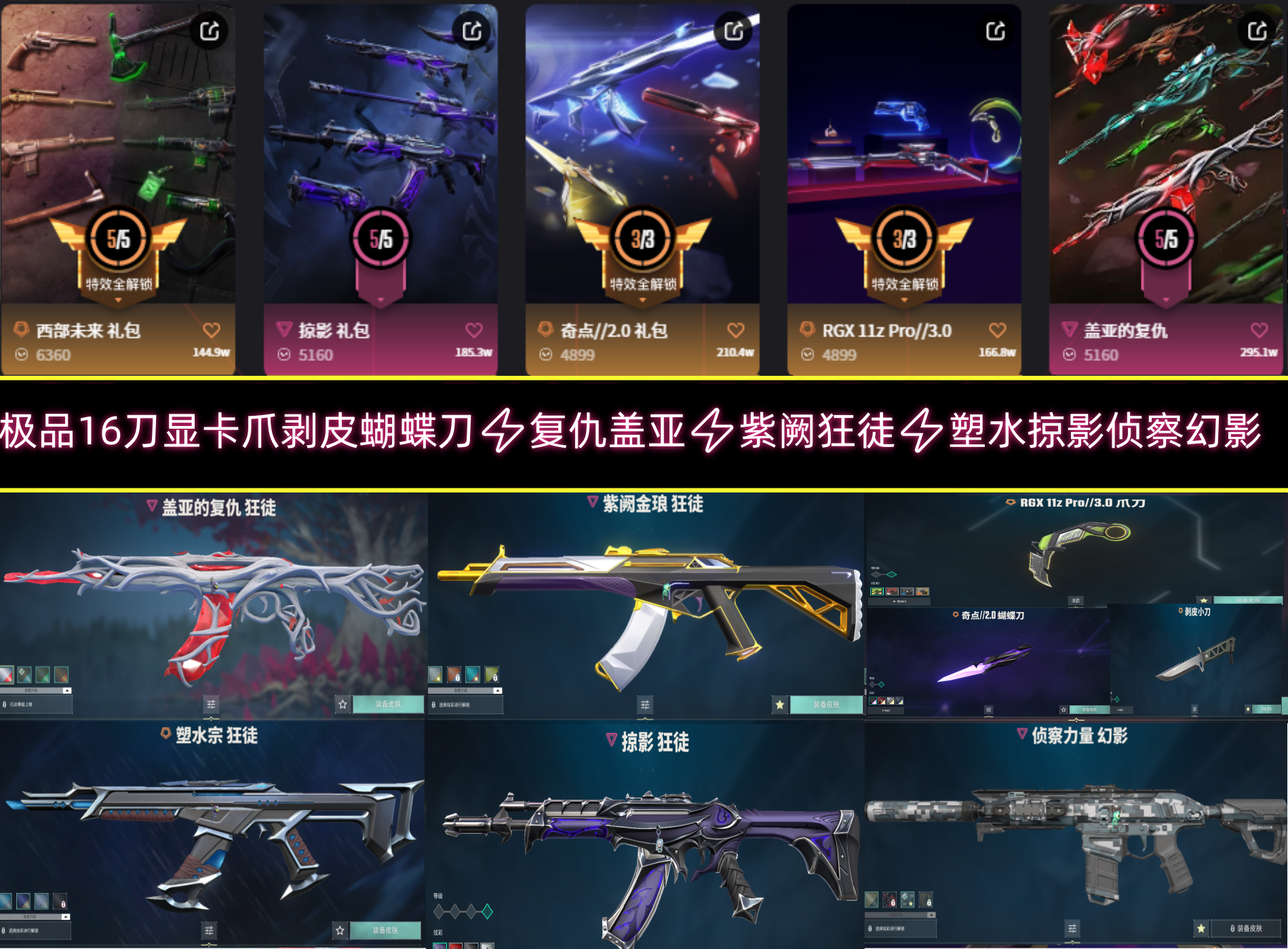 极品16刀✨RXG显卡爪✨剥皮蝴蝶刀✨紫阙复仇噬影奇点归零奇点狂徒侦察幻影✨套装:RXG奇点2盖亚西部掠影;