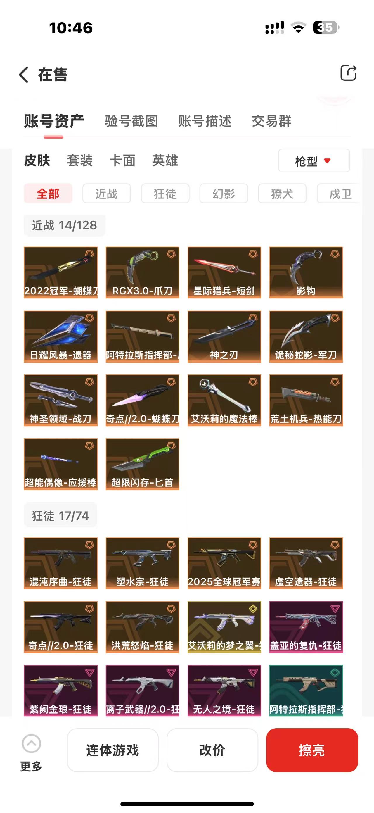 首页 > 租号大厅 > 无畏契约-wegame > wegame/wegame > 【可以排位】22全球冠军♐25全球冠军♐电音光谱 戍卫♐混沌序曲 狂徒♐盖亚ak塑水宗 狂徒