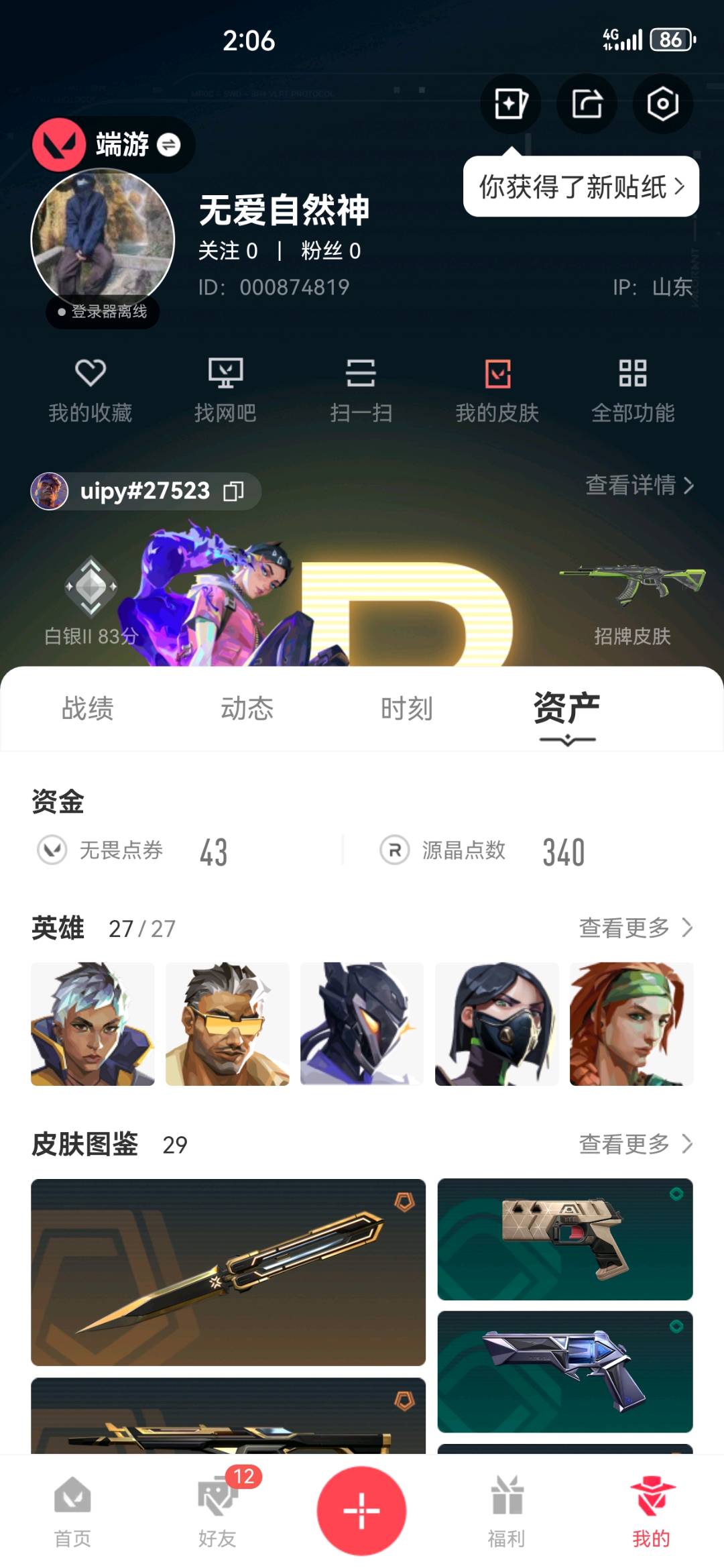 • 游戏区服:无畏契约-wegame / wegame / wegame