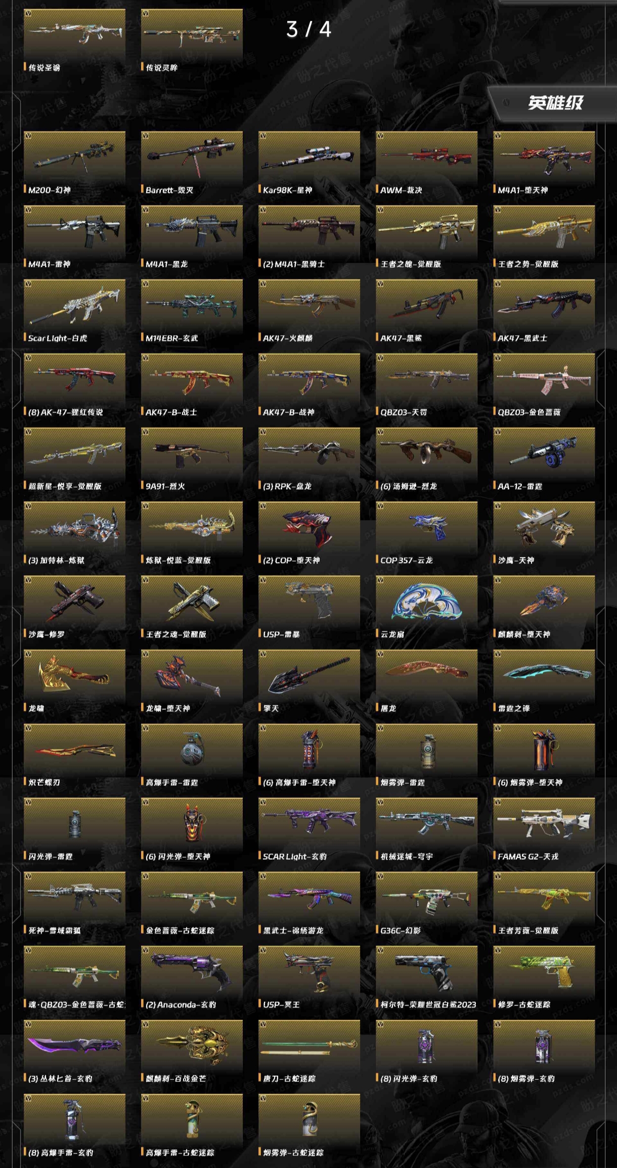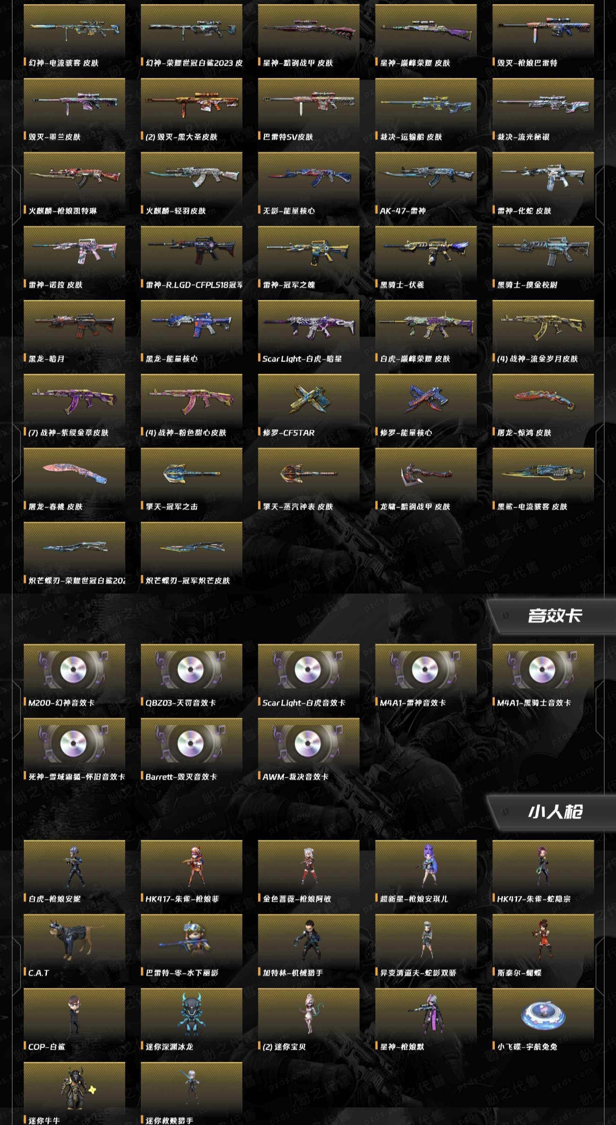 爆破和生化热门武器都有;USP-雷暴,USP-雷暴王者,柯尔特-荣耀世冠白鲨2023,炽芒蝶刃,传说星骇,RPK-盘龙,QBZ03-金色蔷薇,