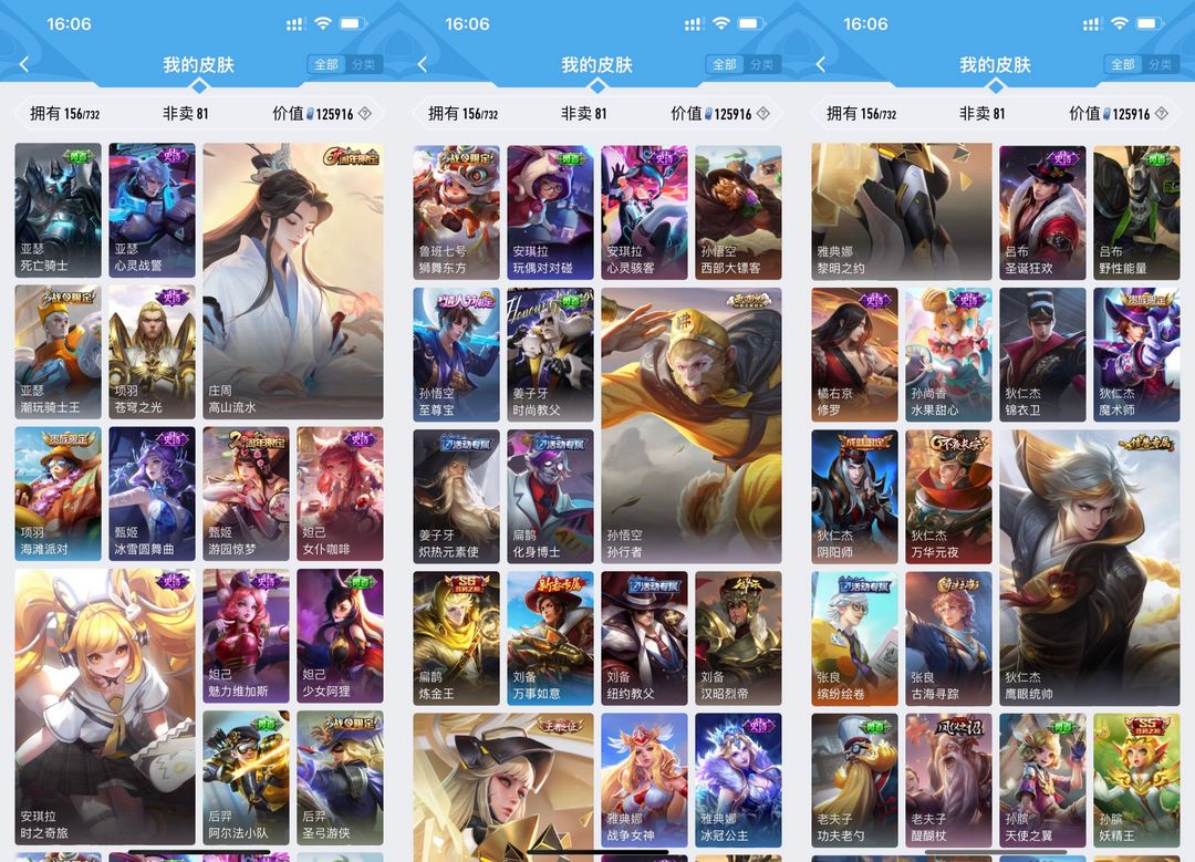 V10满典藏、3小兵皮493皮、最初的交响、愿照·九州拓、万物之道、怪盗基德、龙年限定全套、太华、白虎志、至尊宝、排月行、无双飞将、注意上不了号点号主协㫑