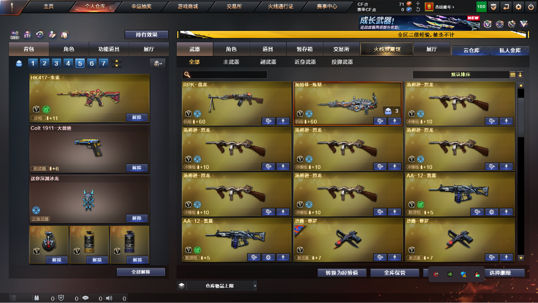 不要开G,违者后果自负。传说光耀 幻神M200 加特林炼狱 斯尔特蝴蝶 六烈龙 六盘龙 等等;USP-雷暴,RPK-盘龙,M200-幻神,