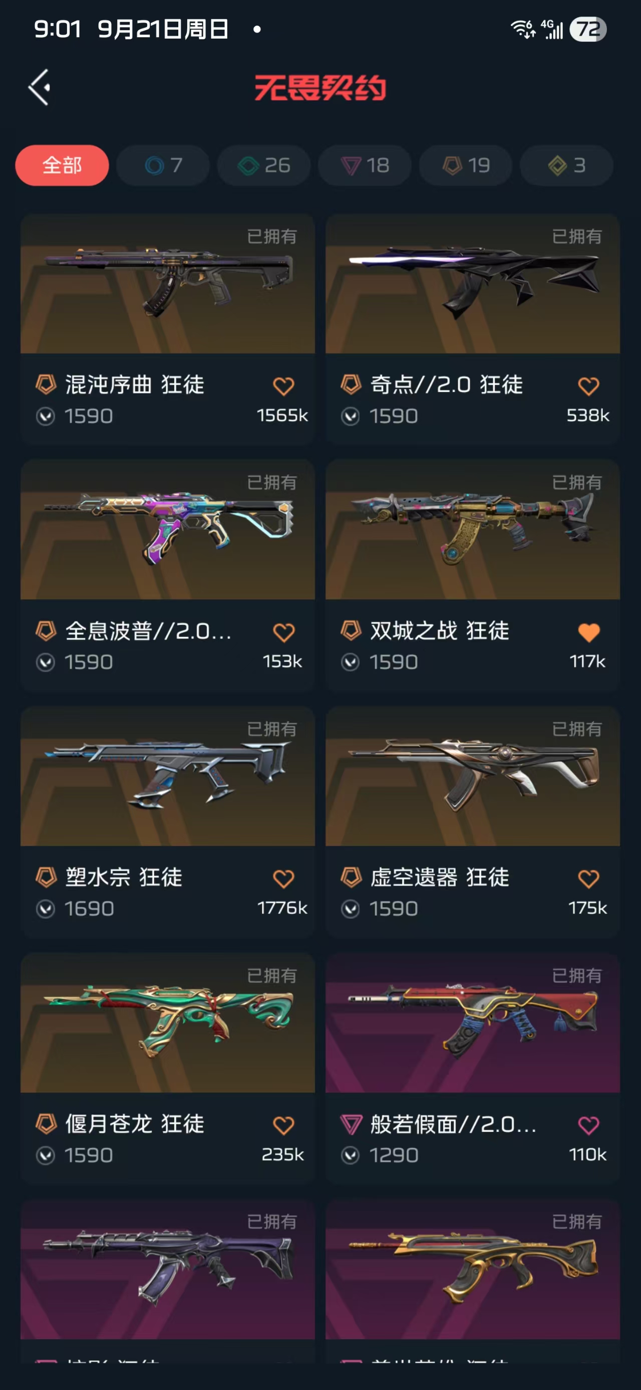 首页 > 租号大厅 > 无畏契约-wegame > wegame/wegame > 全限定多皮肤26万库存