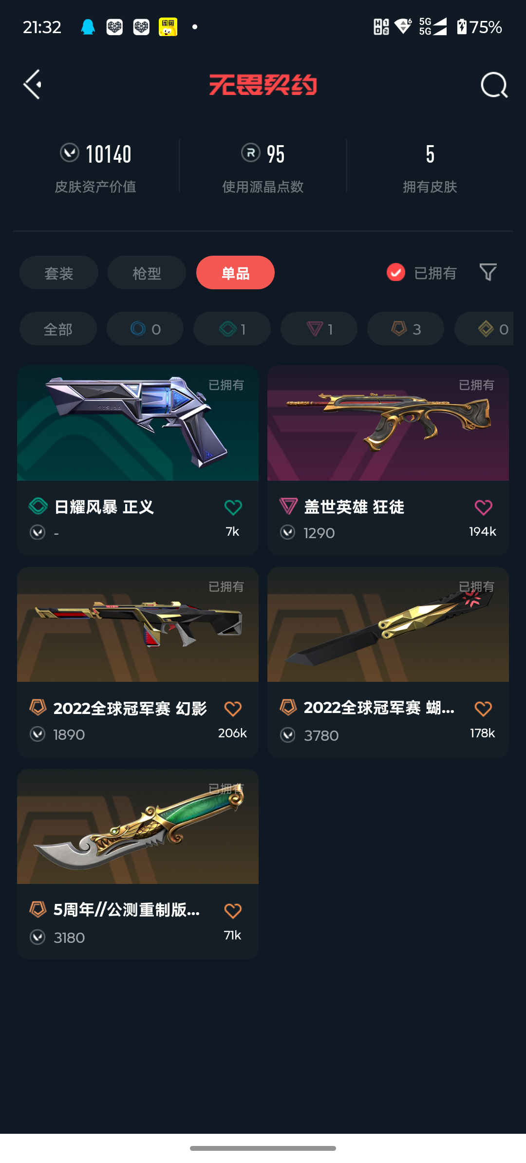 首页 > 租号大厅 > 无畏契约-wegame > wegame/wegame > 2022全球冠军赛套装🔥狂徒盖世英雄🔥5周年//公测重制版 苍龙之刃