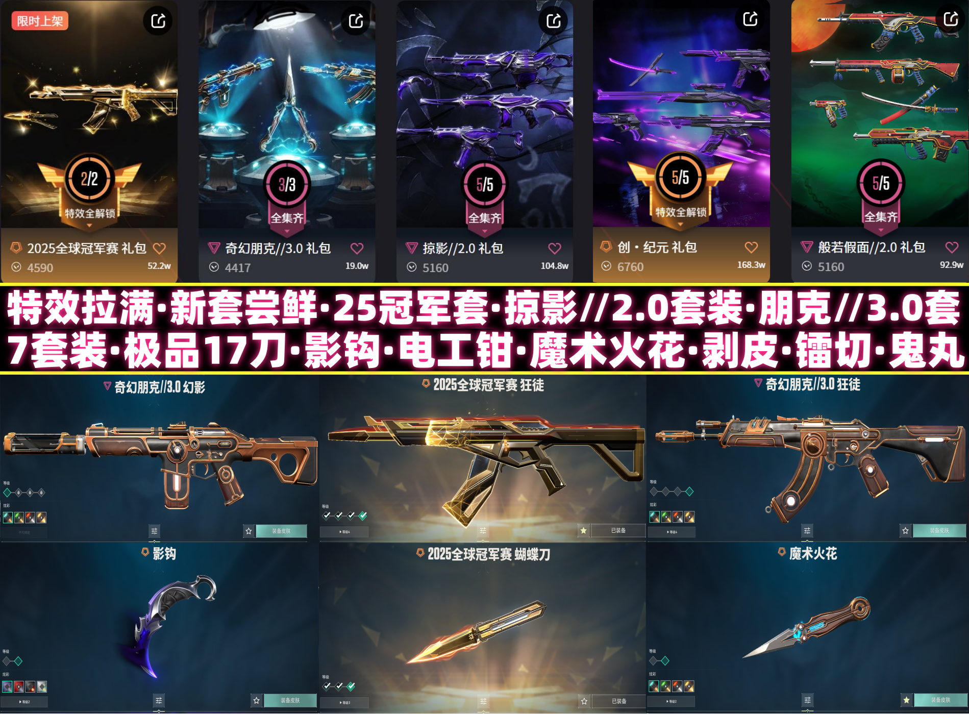 特效拉满✅全新套装✅25冠军套✅掠影//2.0套✅奇幻朋克//3.0套✅侦查力量剥皮镭切影钩魔术火花