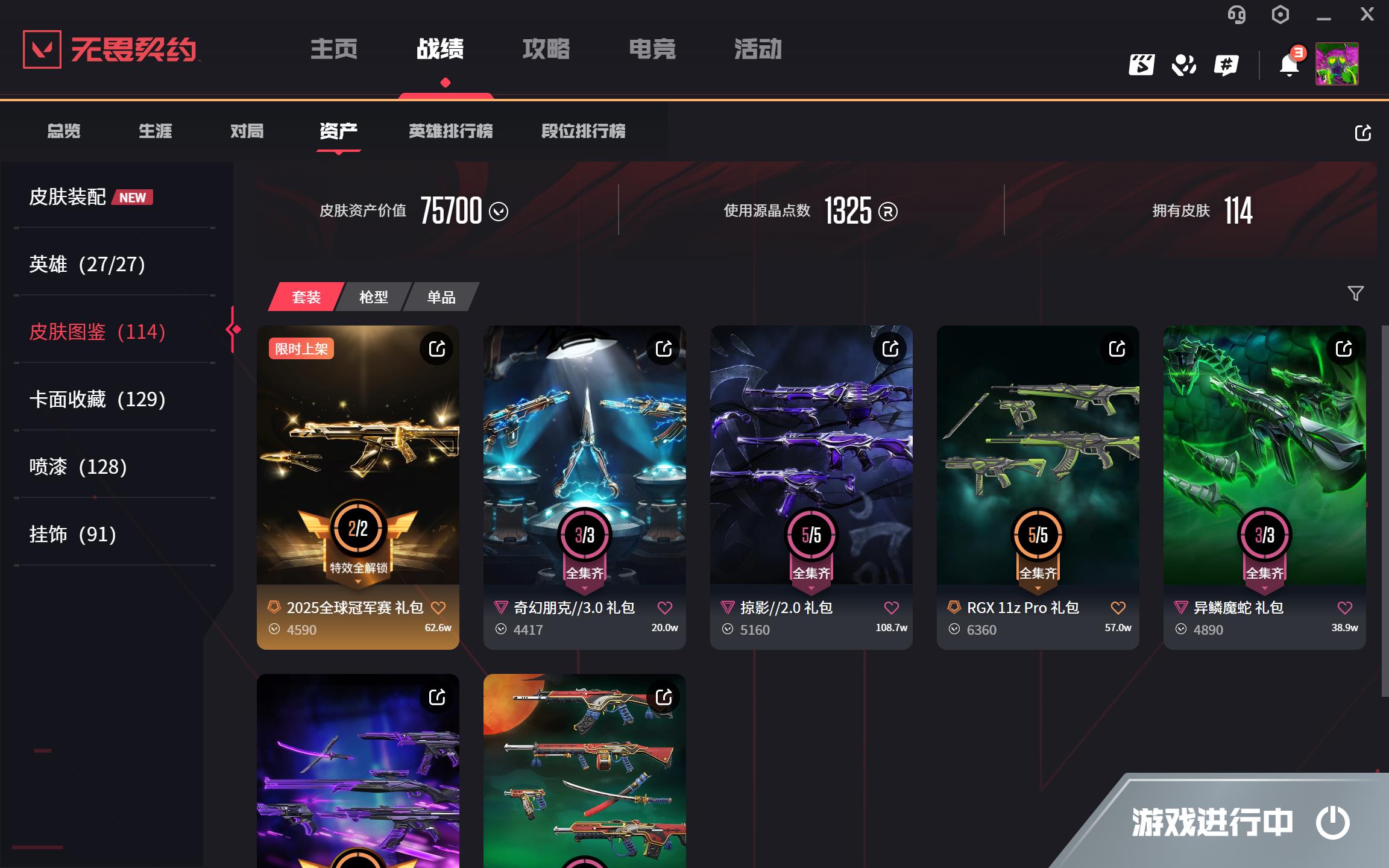 首页 > 租号大厅 > 无畏契约-wegame > wegame/wegame > 特效拉满✅全新套装✅25冠军套✅掠影//2.0套✅奇幻朋克//3.0套✅侦查力量剥皮镭切影钩魔术火花