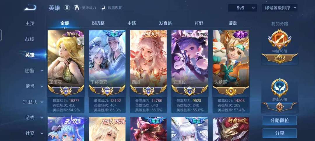 76段在榜省中路⭐️四国服王昭君安琪拉西施干将⭐️法师辅助皮全极品女号