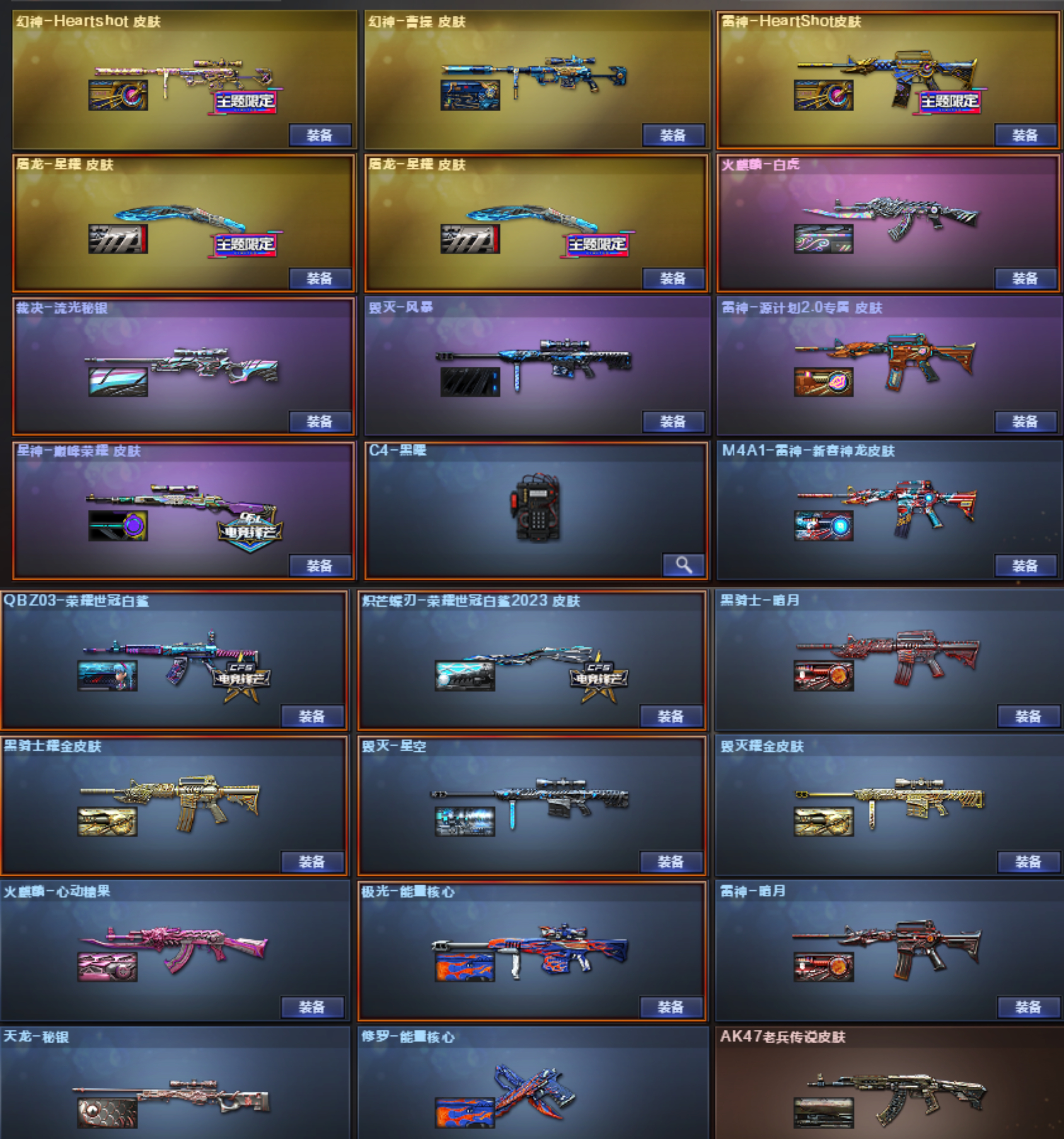 爆破生化号,传说灵眸和幻神三皮,2cop 3柯尔特 2usp,光耀序列号7555,8个四防角色 星神巅峰荣耀皮+音效卡+星霆,裁决流光皮+音效卡,qbz世冠白鲨皮+音效卡,雷神7皮,白虎百战金芒皮 生化背包四防隼,5烈龙4盘龙5炼狱 斯泰尔蝴蝶 两把蝴蝶刀,冲锋枪 机枪 步枪 狙击枪 手枪各种生化弹匣都有 猫鲨鱼手套,王者破空枪刃,马枪,幻神喜狮迎春皮肤已赋予;USP-雷暴,柯尔特-荣耀世冠白鲨2023,柯尔特-冠军之特,炽芒蝶刃,传说星骇,传说女帝,隼,