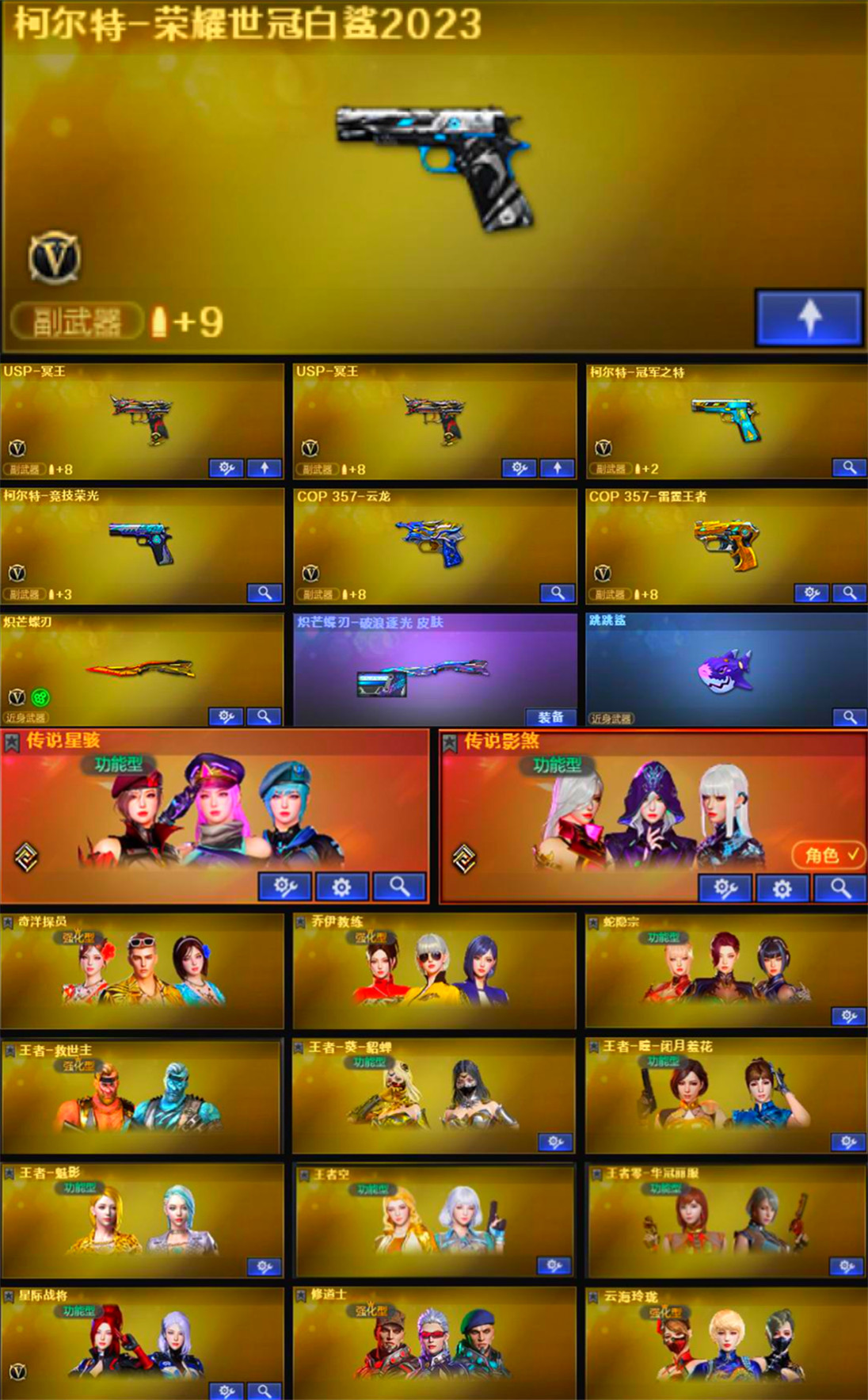 ★收藏好评!★ ━━━━━━━━ 由于异地登录保护机制,部分客户在使用客户端自动上号时会出现密码错误,注意本号密码不会错误 ,请多尝试5-6次!本账号已经过虚拟财产,请各位科技大神高抬贵手。请素质租号,文明游戏,谢谢大家配合!!!;柯尔特-荣耀世冠白鲨2023,柯尔特-冠军之特,炽芒蝶刃,传说影煞,传说星骇,RPK-盘龙,QBZ03-金色蔷薇,