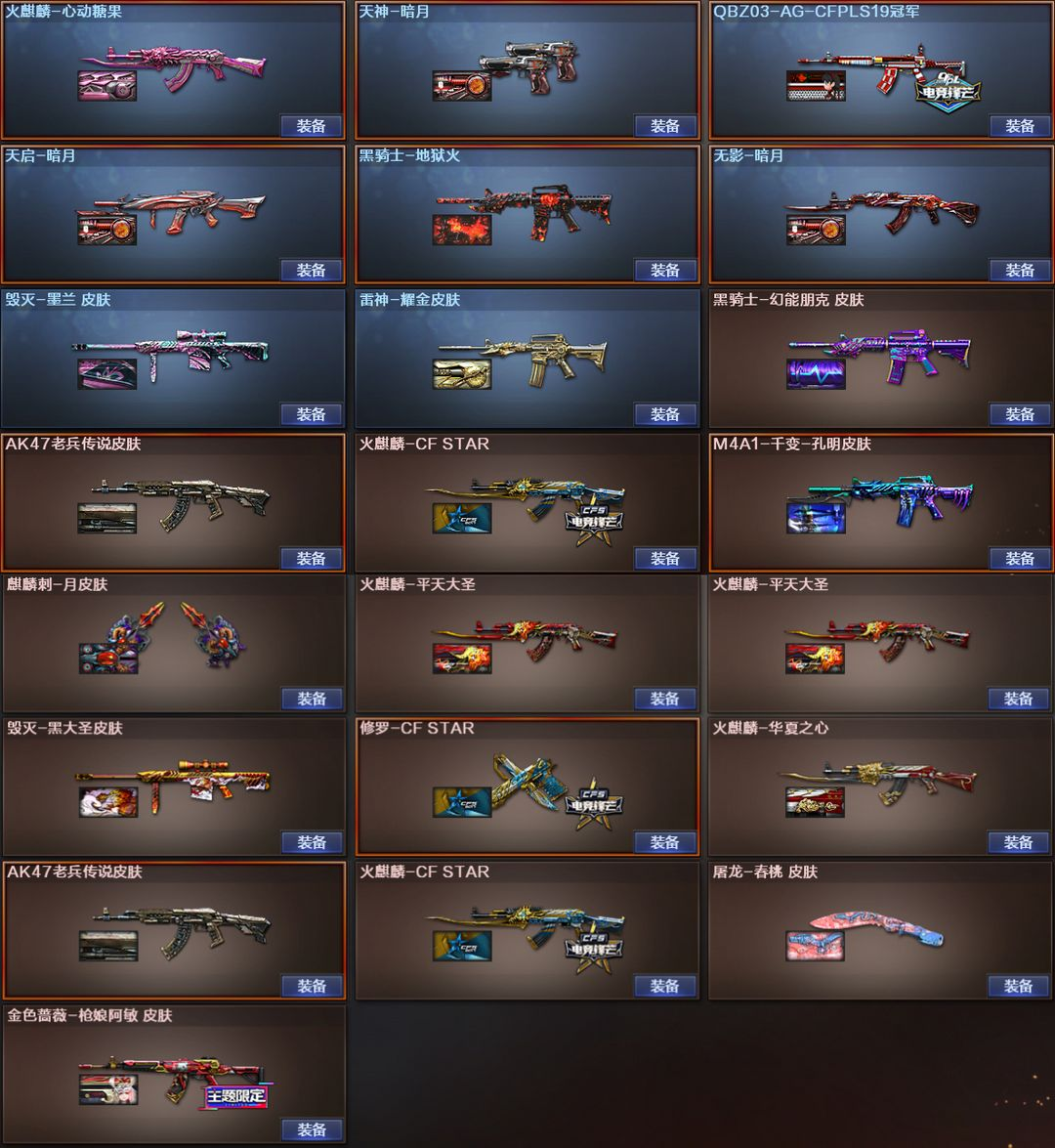 幻神、QBZ冠军AG皮枪娘、王者貂蝉、雷神星空音效、裁决火麒麟、毁灭耀金、6烈死亡之眼