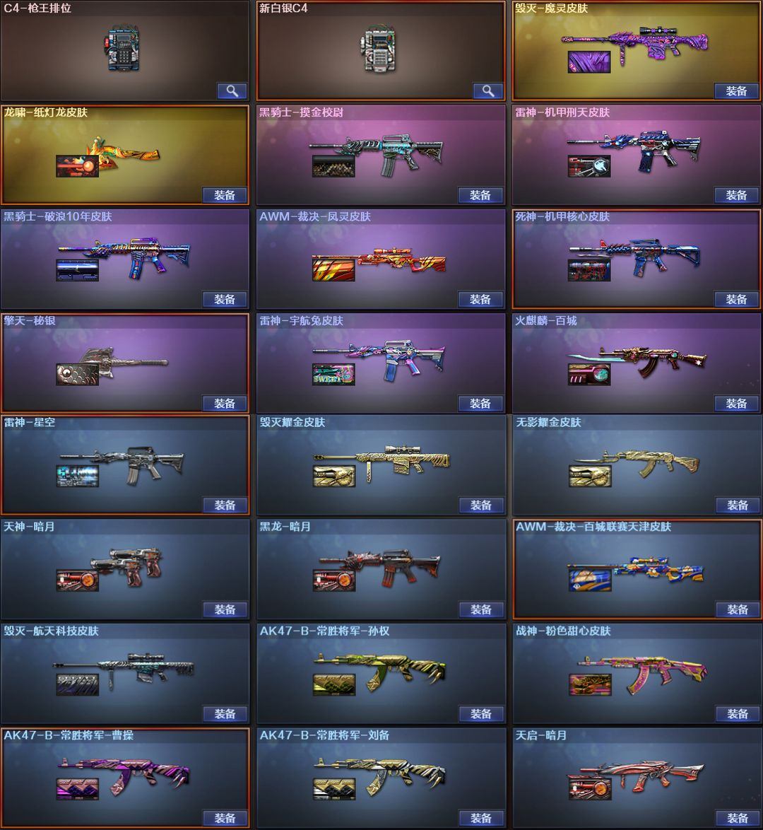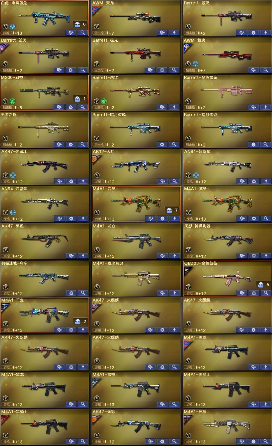 幻神、QBZ冠军AG皮枪娘、王者貂蝉、雷神星空音效、裁决火麒麟、毁灭耀金、6烈死亡之★★★其他看图★★★;RPK-盘龙,QBZ03-金色蔷薇,M200-幻神,