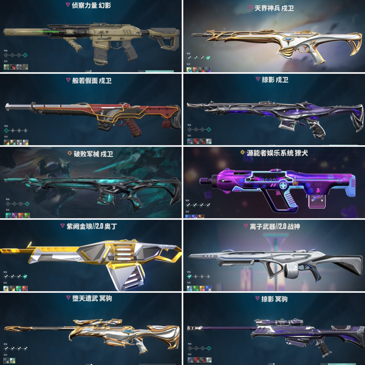 【拥有机枪】紫阙金琅//2.0-奥丁,日耀风暴-奥丁,神圣领域-战神,流星兵团-奥丁,太空穿梭-战神,末日之翼-奥丁,纳米击-奥丁,浮光跃金-战神,采蜜小蜂队-战神,深海水族-战神,战术小伙伴-奥丁,萌彩剪影-战神,