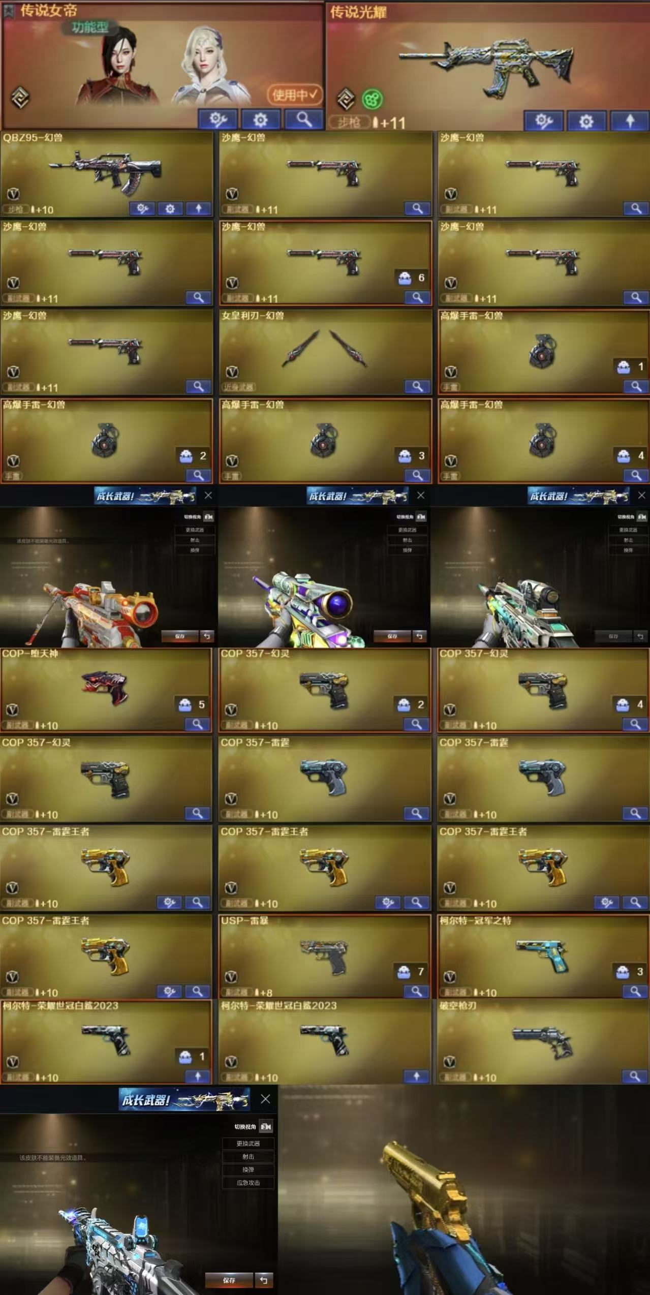 ep全套氪穿❤️女帝6幻兽❤️百战金芒柯尔特❤️幻神⑥皮卡❤️巅峰裁决+卡白虎白鲨❤️满副武;USP-雷暴,柯尔特-无冕之王,柯尔特-荣耀世冠白鲨2023,柯尔特-冠军之特,炽芒蝶刃,传说女帝,妮妮,