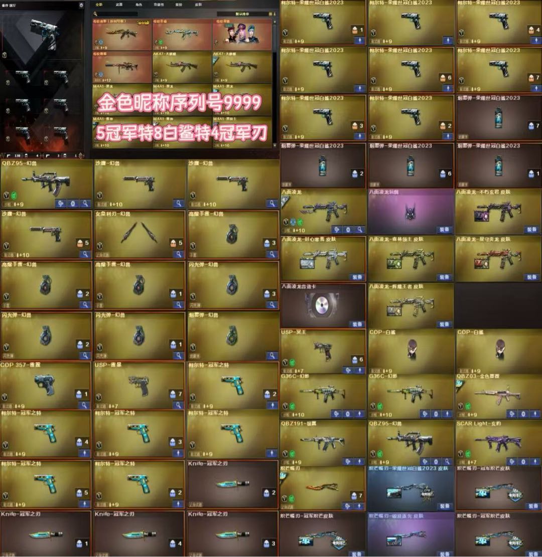 EP全套序列号9999金色昵称3套幻兽传说幽瞳5冠军特8白鲨特4冠军小刀满皮肤8面