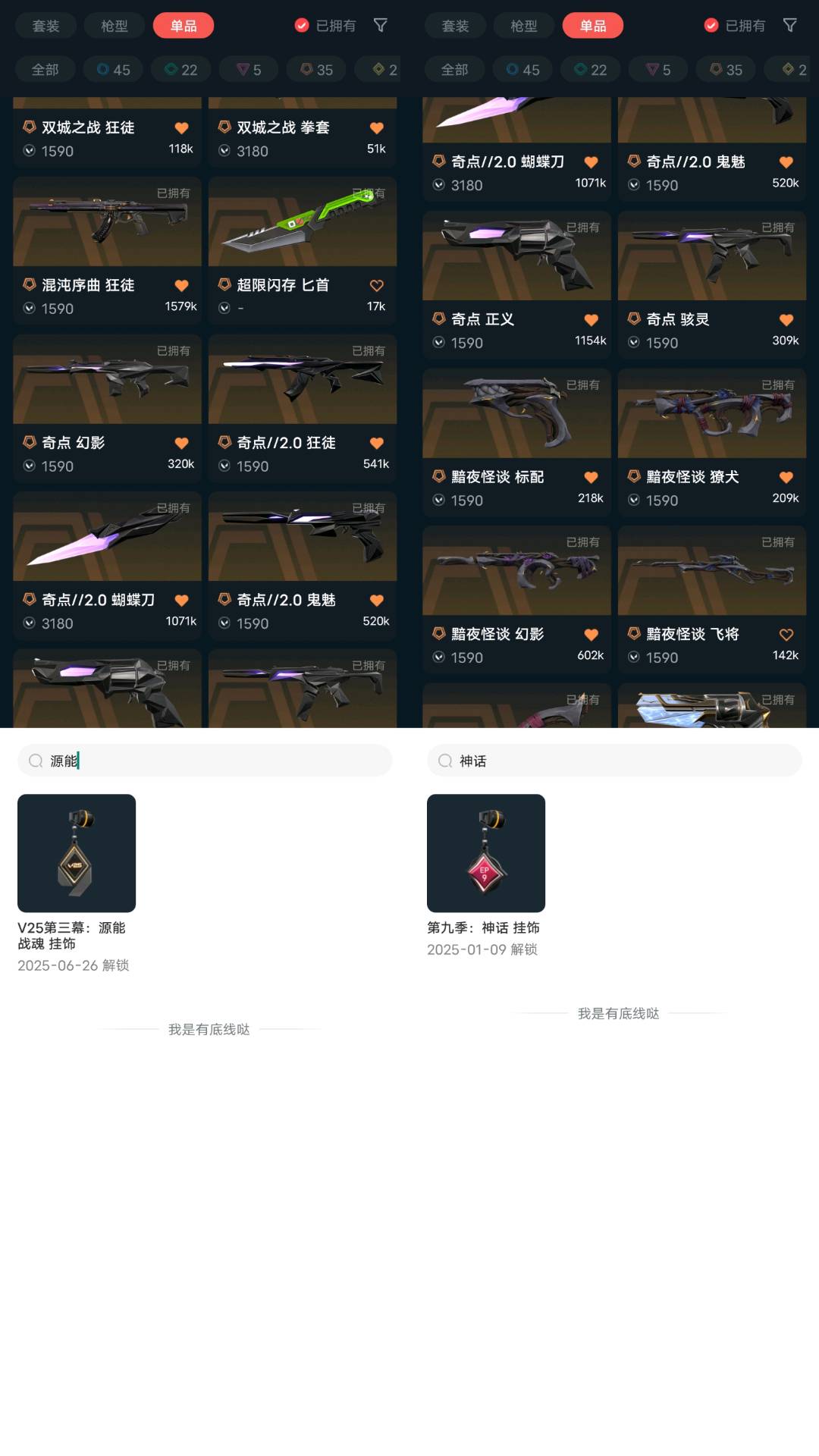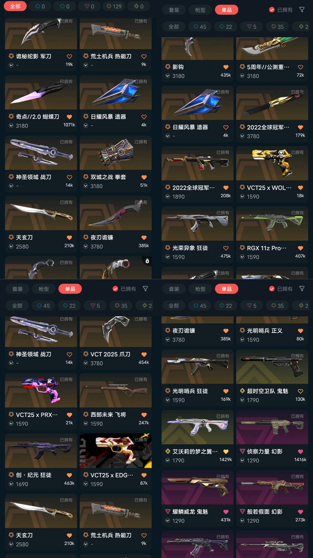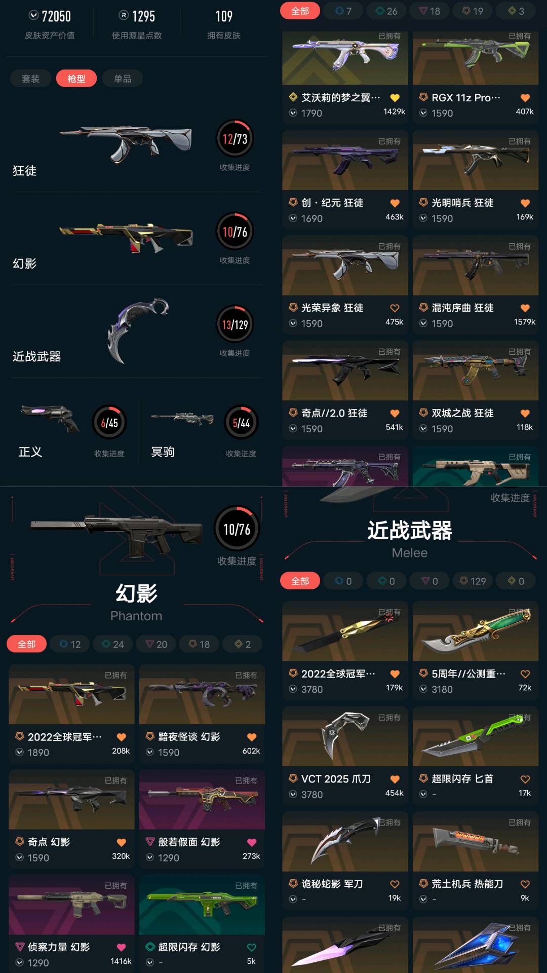 1;5周年//公测重制版 苍龙之刃,VCT 2025 爪刀,掠影 狂徒,侦察力量 幻影,RGX 11z Pro 狂徒,混沌序曲 狂徒,光荣异象 狂徒,