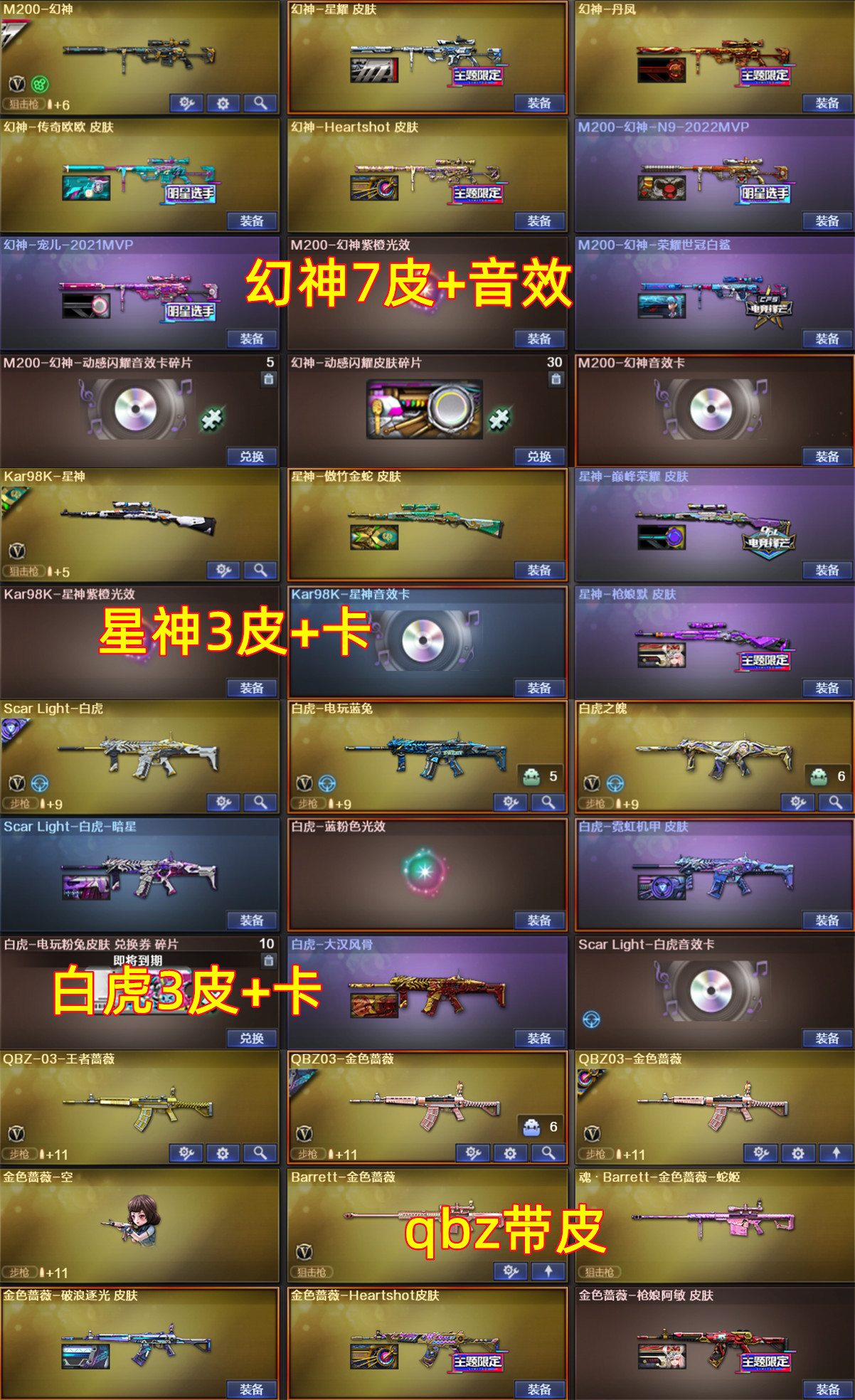 幽瞳幻神欧欧宠儿7皮+卡/星神3皮+卡/白虎qbz蝴蝶刀6烈6盘冠军特薇刃银翼