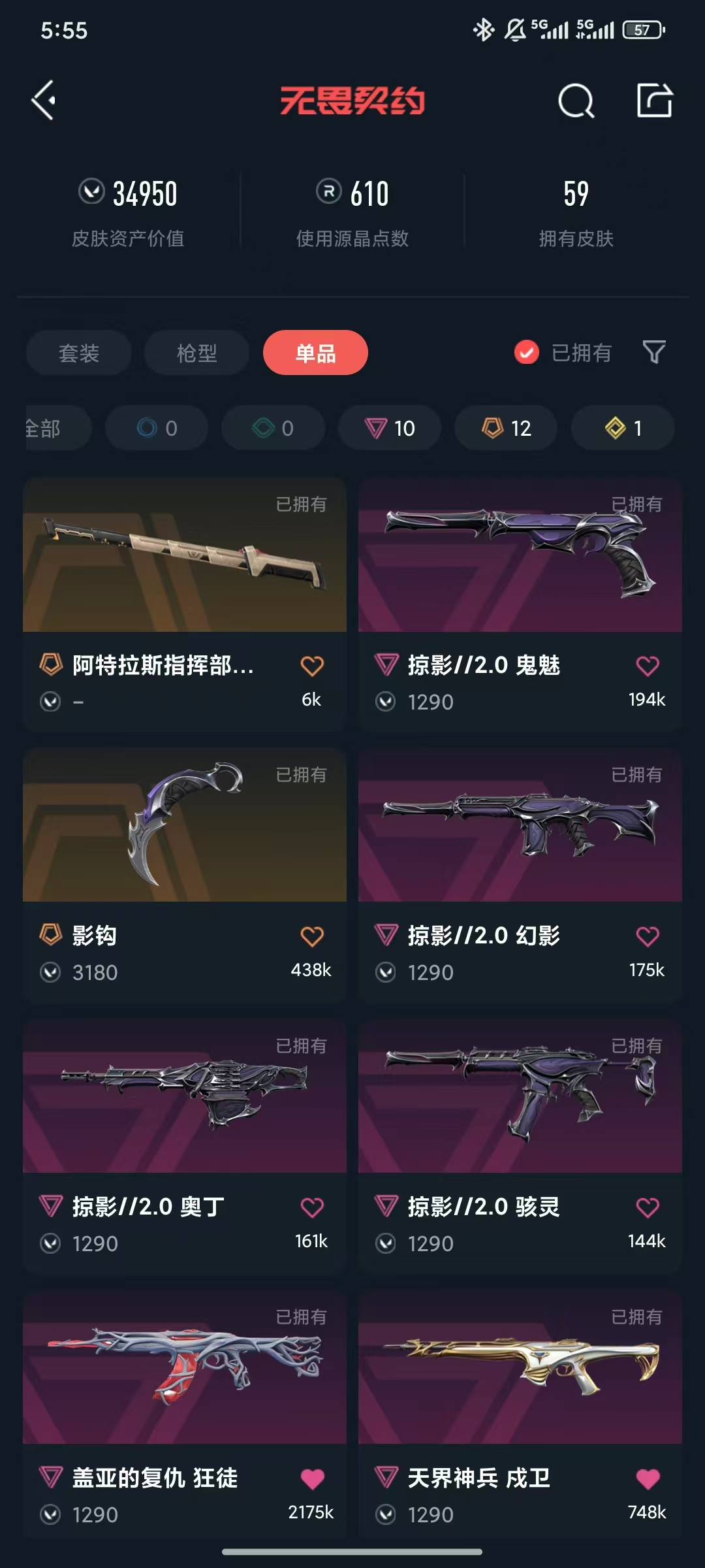 首页 > 租号大厅 > 无畏契约-wegame > wegame/wegame > 22冠军套♥掠夺2.0套装♥剥皮小刀♥太极扇♥盖亚混沌光荣掠夺AK♥侦查22冠军掠夺2.0m4♥