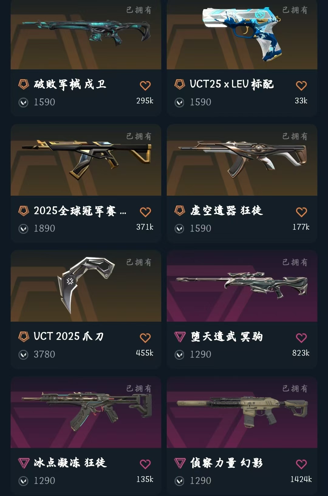 冻结秒解✨可排✨混沌序曲2.0套✨25冠军套✨VCT爪刀✨虚空遗器狂徒✨VCT标配✨侦察力量幻影