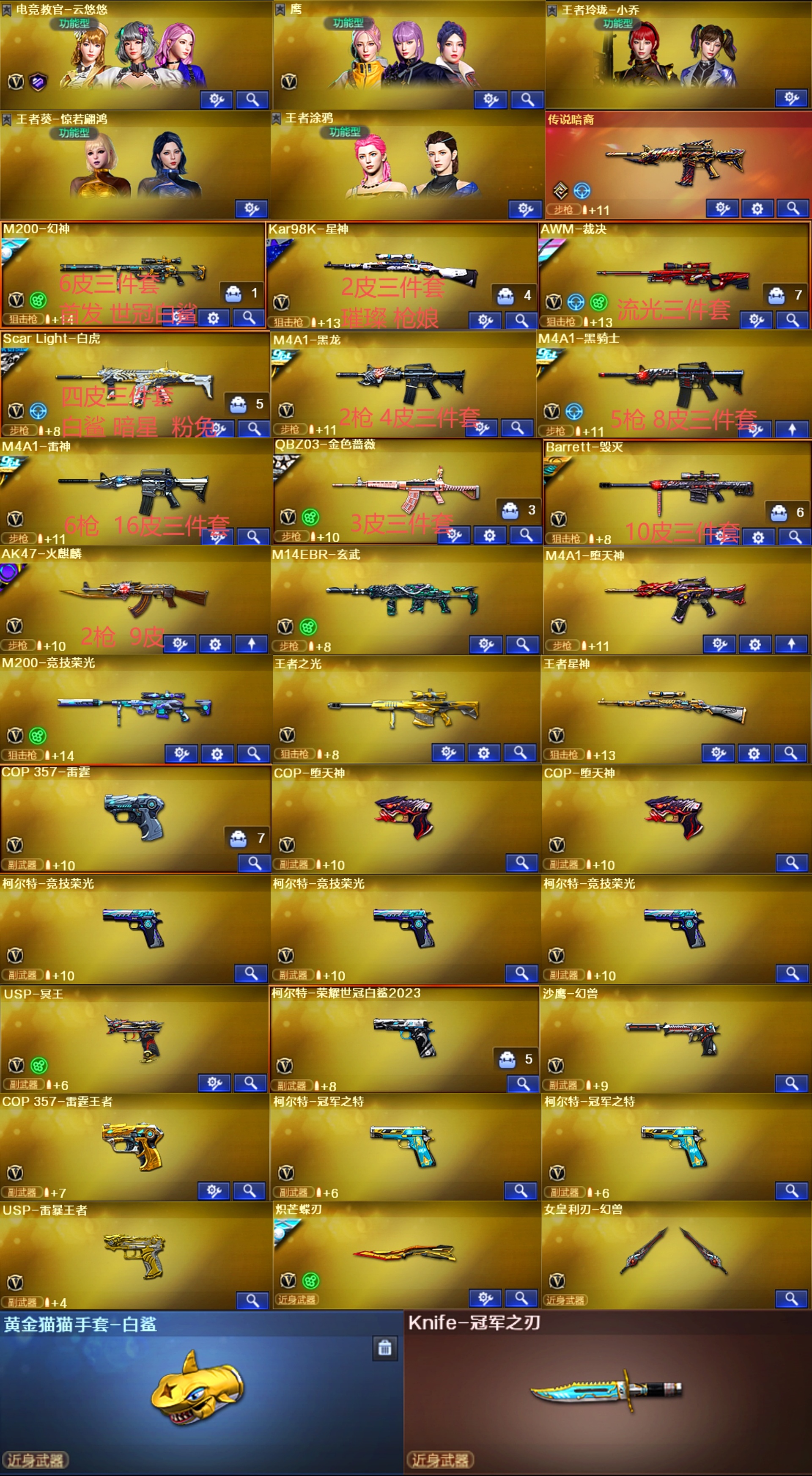 账号开挂追责 后台看的一清二楚!!!! 不要有侥幸心理 开挂是犯罪行为!!!!;USP-雷暴王者,柯尔特-荣耀世冠白鲨2023,柯尔特-冠军之特,炽芒蝶刃,Knife-冠军之刃,电竞教官-云悠悠,RPK-盘龙,