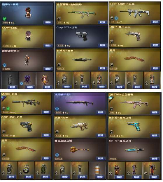幻神音效卡+白鲨冠军皮、降龙皮、黄忠皮❤️QBZ白鲨冠军皮、AG冠军皮、冠军之薇❤️雷神+冠军之魄、虎将、维纳斯、宇航兔兔、暗月、能量核心+雷神音效卡+雷神动感闪耀音效卡+雷神蓝粉色光效❤️黑骑士+少林皮、战神马超、冠军之势、摸金校尉、音效卡❤️火麒麟音效卡+巅峰荣耀、CFS2018、甜心糖果❤️毁灭音效卡+CFS2020❤️极光音效卡+能量核心❤️双白虎、朱雀、裁决、炼狱❤️6烈龙+斯泰尔蝴蝶❤️9修罗+COOP幻灵、USP神功天巧、冠军之特❤️小人枪雷神刀锋、灵狐火麒麟、朱雀蛇隐宗、白鲨cop、❤️觉醒版王者之魄、王者之心、王者岩心、王者之怒、王者之幻、王者之力、王者之击、炫金黑龙、炫金骑士、炫金毁灭、炫金黑武士❤️4防貂蝉、国色、闭月、职业经理❤️挑战3阶满BUFF、职业挑战近战武器、冠军之刃❤️;