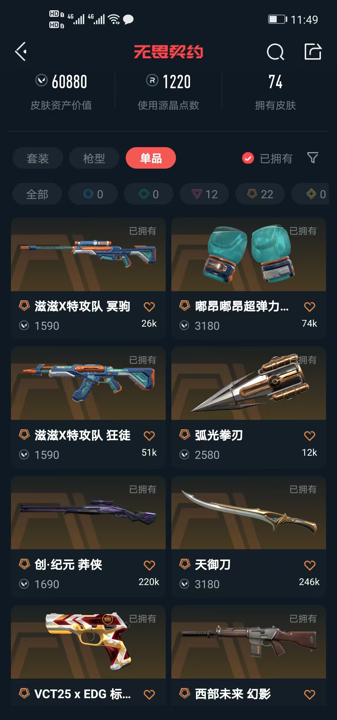 • 武器皮肤数量: 74