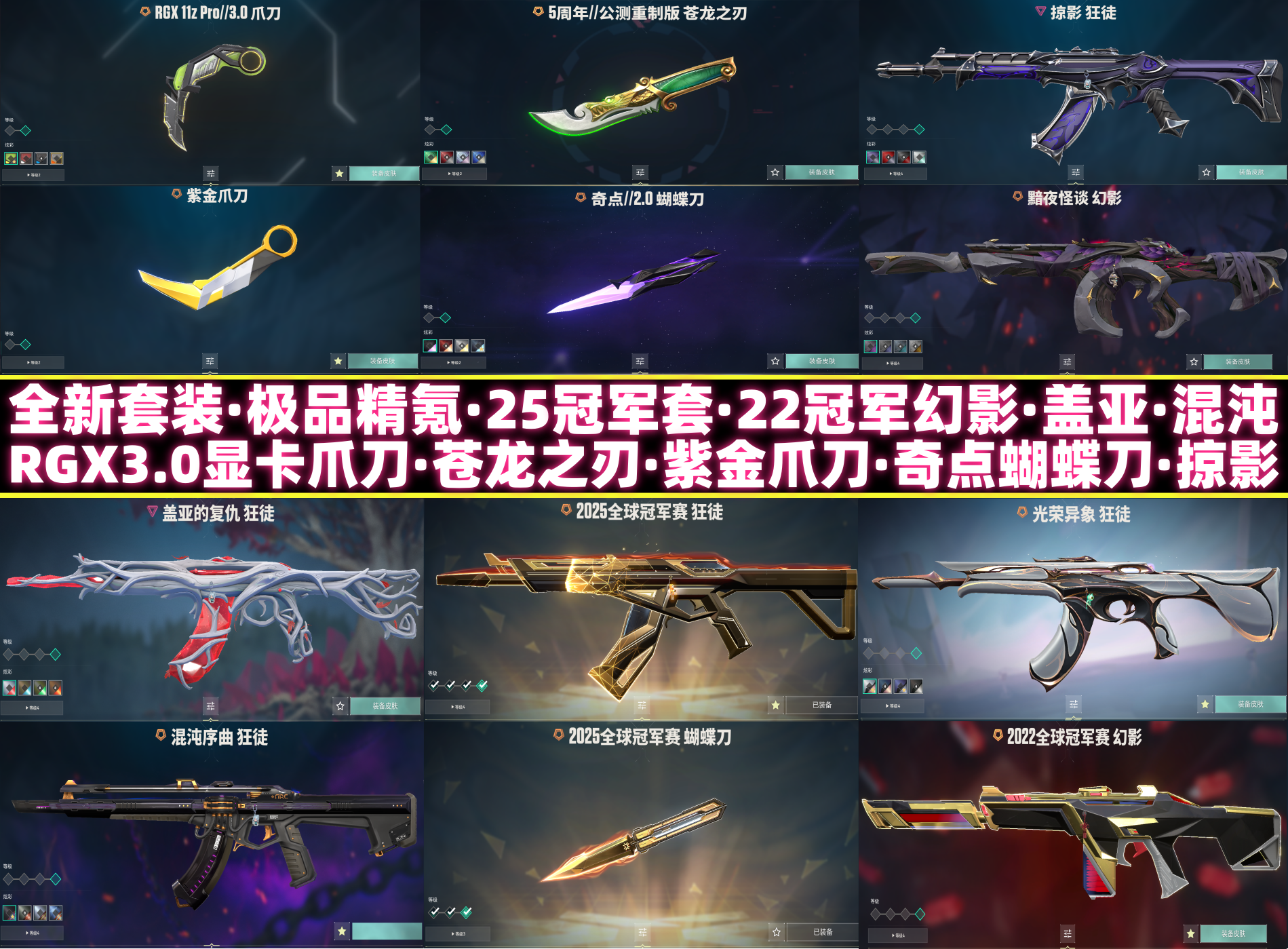 6万库存✅全新25冠军套22冠军幻影✅特效拉满✅苍龙之刃RGX显卡爪刀紫金爪刀✅盖亚混沌流脓光荣异象