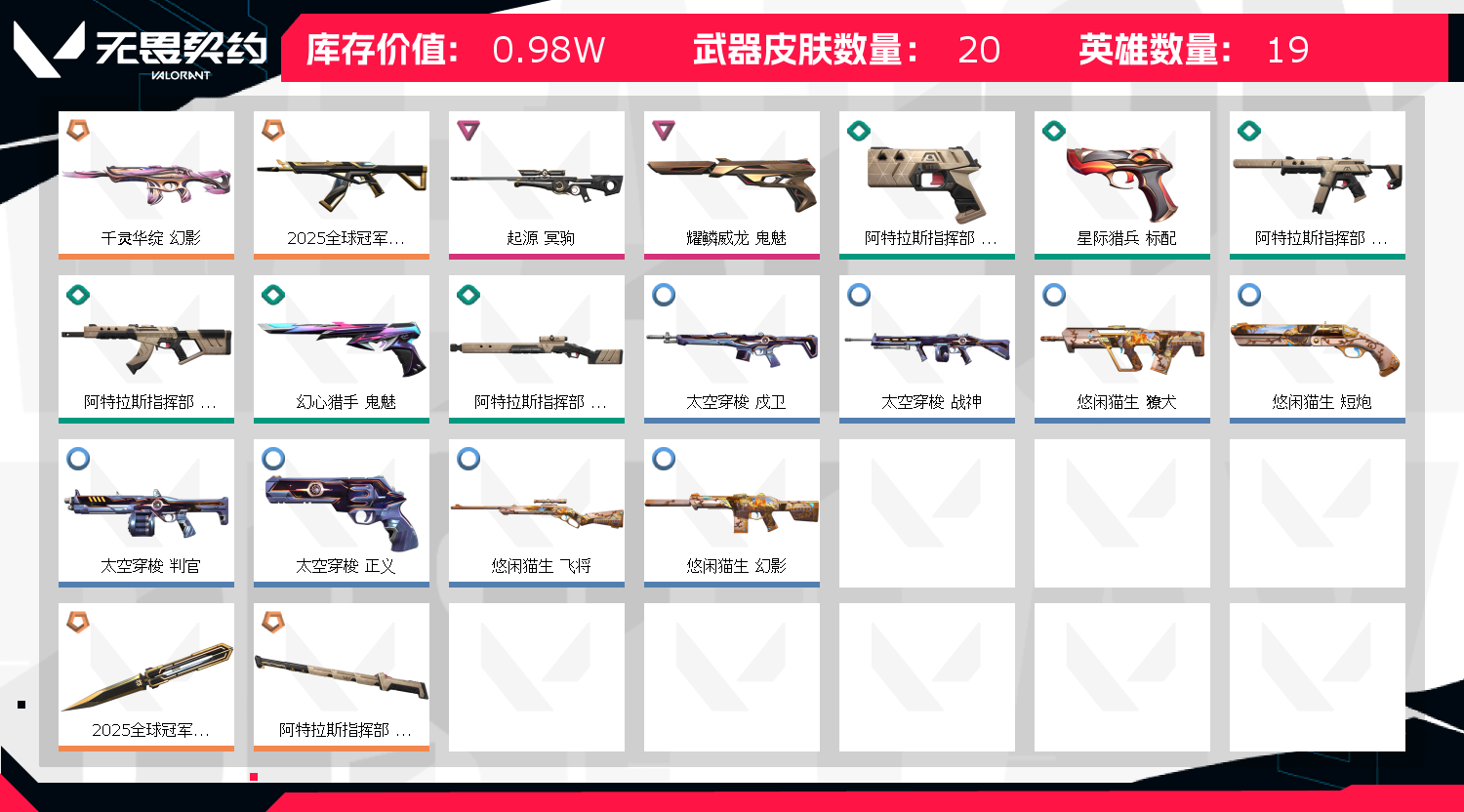 首页 > 租号大厅 > 无畏契约-wegame > wegame/wegame > 可排位❤️冻结秒解⭐️25冠军套🔥满级冠军狂徒🔥满级冠军蝴蝶刀🔥满级莲花幻影🔥起源大狙🔥