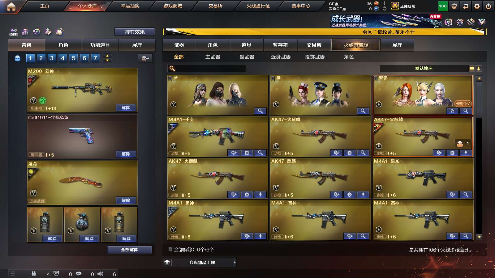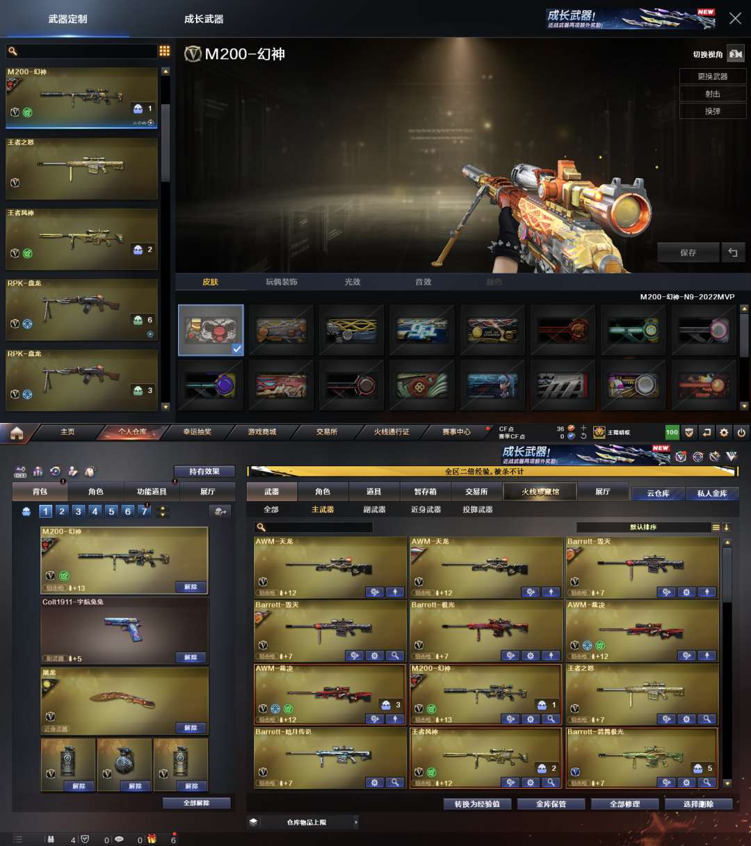 北部百V双全装/幻神念旧皮肤/六列盘蝴蝶/白虎/qbz金色蔷薇/王者风神/毁灭三件套/裁决/六副/六刀/生化道具齐全