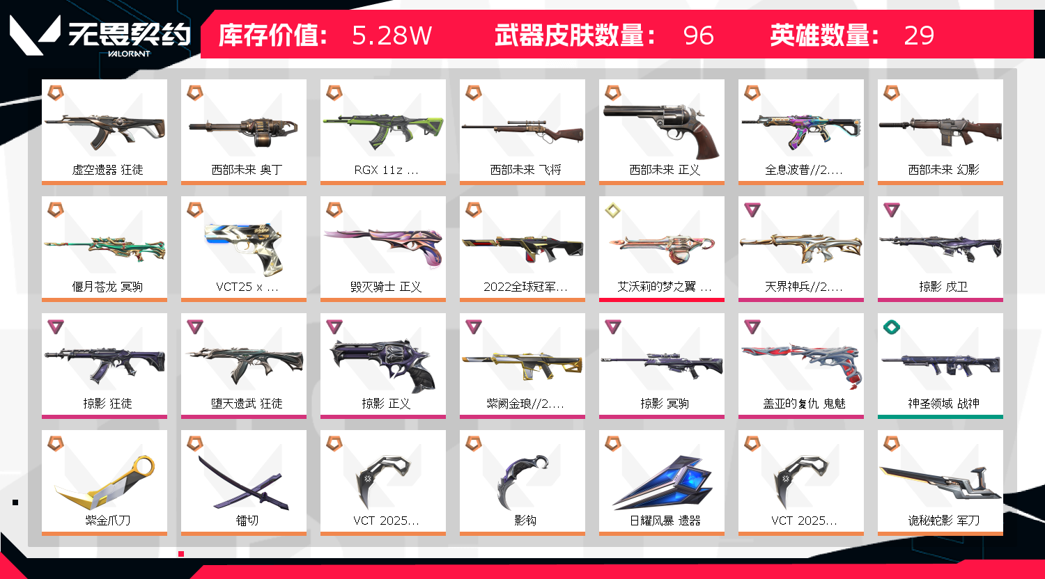 可排位✨5.5w库存✨22冠军套✨25爪刀✨ 西部套✨掠夺套✨紫金爪刀✨苍龙冥狙✨        租客朋友您好,欢迎您的光临!小店一直本着提供优质的账号,以实惠的价格供大家租玩。为共创文明租号平台,下面有几点须知: 💎 【由于近期异地登陆不间断频发,如若出现异地冻结情况《请点击订单页号主协助》,一般在早7:00-晚0:00附近无特殊情况我这边几分钟内都会及时解冻,还请大家耐心等待!如长时间无响应则暂时无法解除,望理解】 💎【禁止游戏内挂机逃跑、送人头、辱骂,禁止炸鱼等消极行为!同时尽量不要杀太多引起封号,所有产生处罚致封号将会拉黑!】 💎【禁止恶意开挂等第三方违规软件使用、恶意毁号,如发现必将追责,因开挂导致封禁将依法通过平台锁定联合警方立案追查。本店铺账号已在当地公安部门申报虚拟财产保护。账号单价值均已远超立案金额,多则几万(并且已有封号十年成功追回案例)】 💎【最后,希望大家文明素质游戏,反对作弊行为,方便大家共同租号娱乐,欢迎老客持续光临!携手共创美好租号平台】;艾沃莉的梦之翼 奥丁,西部未来 奥丁,紫金爪刀,镭切,VCT 2025 爪刀,天界神兵//2.0 幻影,虚空遗器 狂徒,