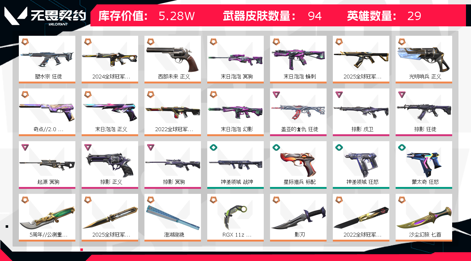 • 皮肤资产价值: 52760