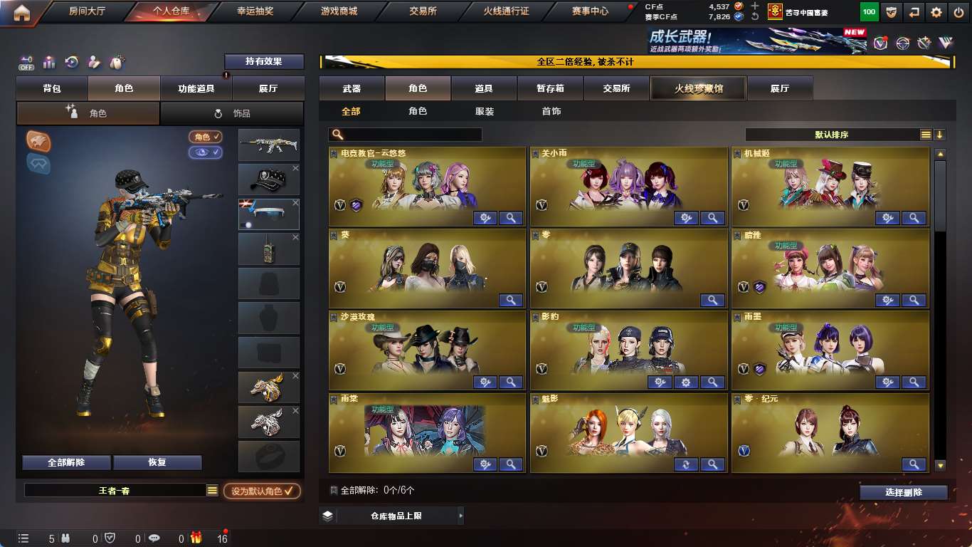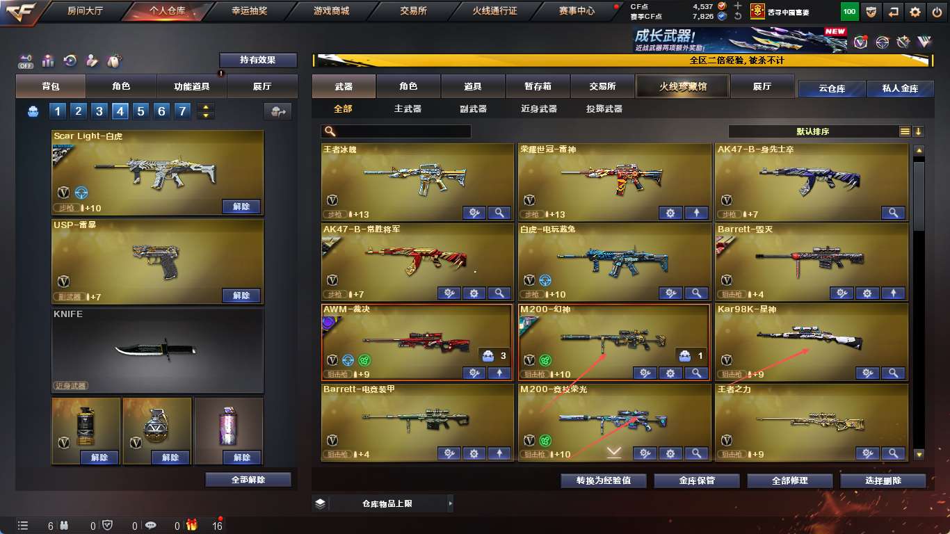 【亮点解析 幻神三件套】 【m200-幻神+音效卡+幻神-传奇欧欧+曹操+电流骇客+幻神-冠军之幻+幻神-黄忠】 【竞技荣光套+四防云悠悠+usp雷暴】 【98k星神】 【王者幻神】 【g36c幻影】 【scar白虎+白鲨23冠军】 【qbz金色蔷薇】 【裁决+音效卡+巅峰荣耀】 【毁灭+音效卡】 【幻灵套】 【火麒麟】 【麒麟】 【黑龙】 【雷神+音效卡】 【黑骑士+音效卡+黑骑士-冠军之势】 【王者之心 王者之翼 王者冰魄】 【11手呛 修罗 天神 usp雷暴 cop堕天神 cop幻灵*2】 【14近战 屠龙 擎天 麒麟刺 幻灵雷*2 炽芒蝶刃蝴蝶刀 王者之锋】 【手雷 夜魔雷 电竞装甲*7 幻灵雷*7 竞技荣光】 【四防 沙漠玫瑰 影豹 雨棠 王者春 王者葵惊若翩鸿】;USP-雷暴,荣耀世冠-柯尔特,炽芒蝶刃,沙漠玫瑰,电竞教官-云悠悠,晴雅,QBZ03-金色蔷薇,