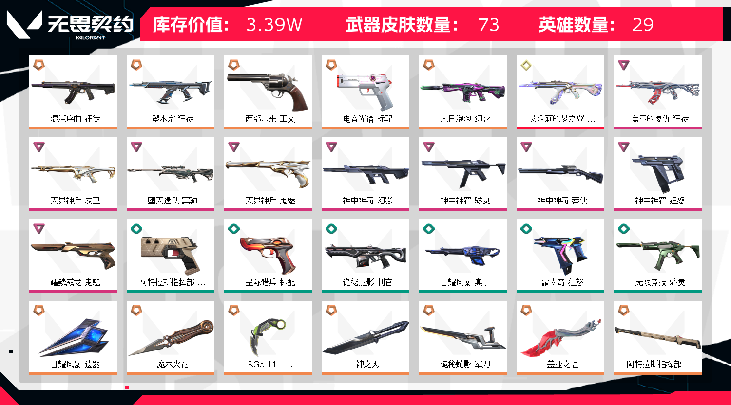 • 武器皮肤数量: 73