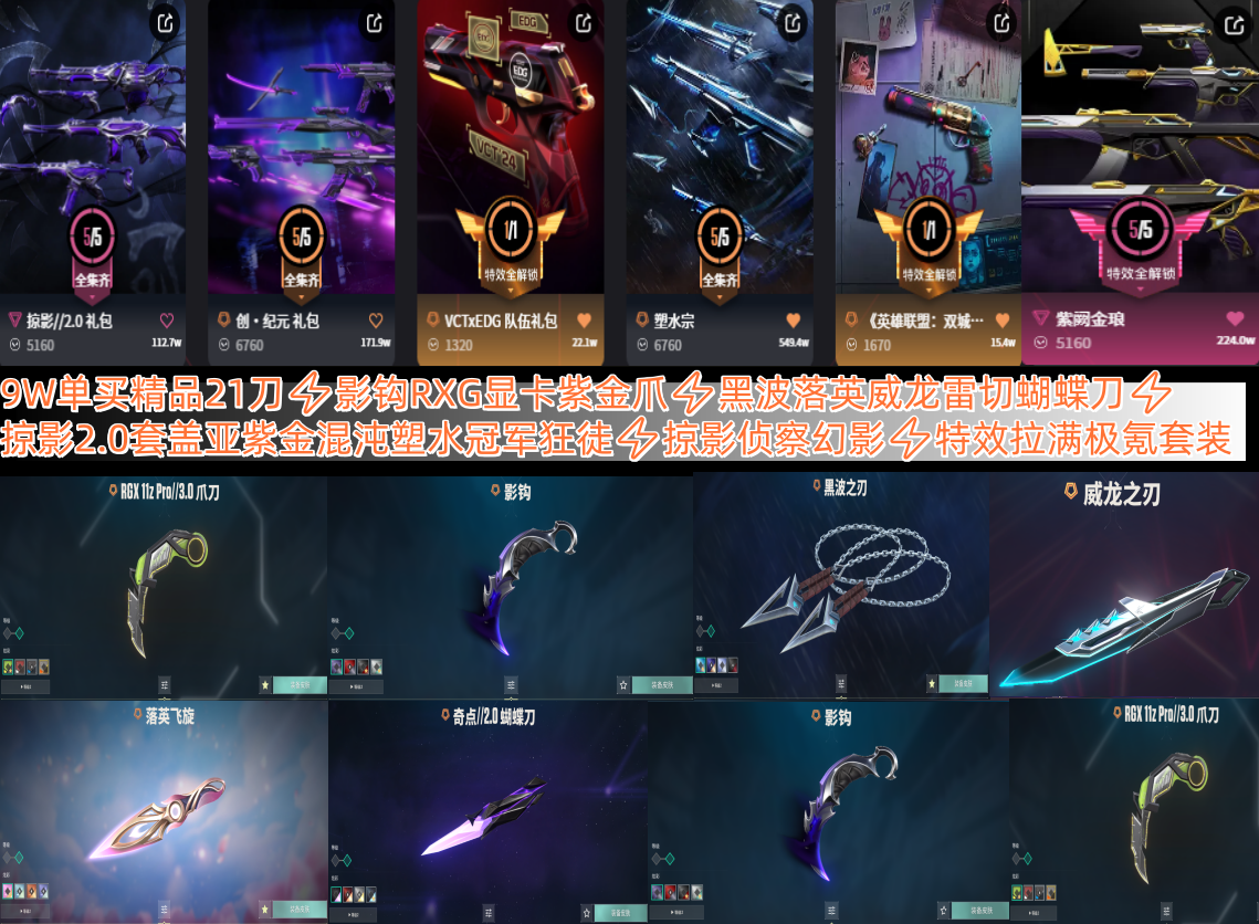 极氪9W21刀⚡影钩RXG显卡紫金爪⚡黑波落英威龙蝴蝶刀⚡掠影2盖亚紫金混沌塑水冠军侦察幻影特效拉满;黑波之刃,紫金爪刀,镭切,威龙之刃,归零者 獠犬,盖亚的复仇 狂徒,掠影 狂徒,