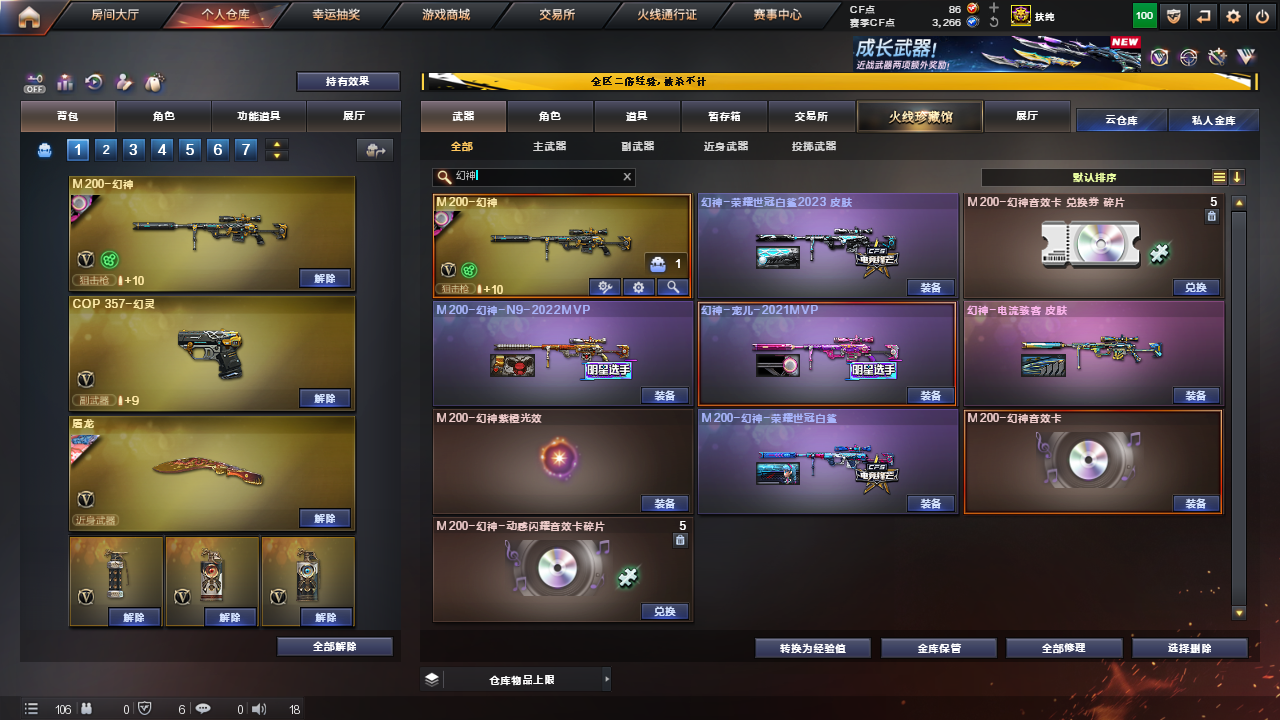 幻神五皮宠儿念旧白鲨世冠2023白鲨电流+幻神音效卡,G36-幻影,白虎,朱雀,QBZ白鲨三件套,雷神6皮,火麒麟5皮,毁灭5皮,冠军之特,3COP.USP