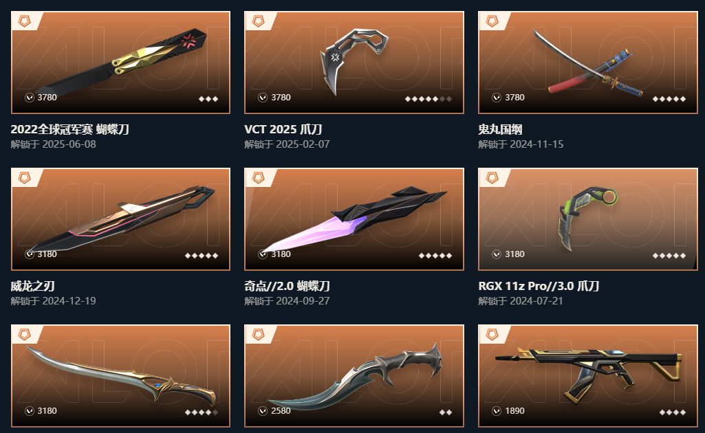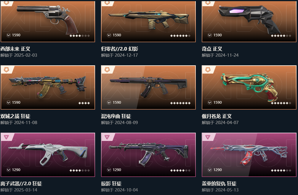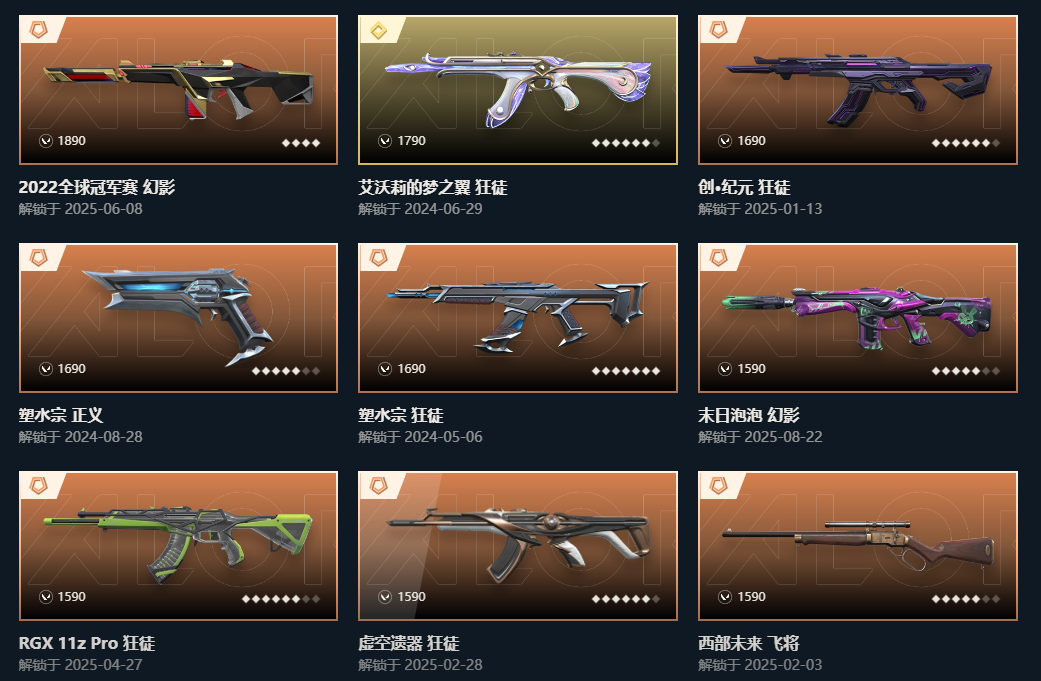 2225冠军套❤️25爪刀离子显卡虚空纪元掠影艾莉沃混沌双城塑水宗盖亚弃王狂徒❤️泡泡幻影西部起源盖世天界;威龙之刃,VCT 2025 爪刀,盖亚的复仇 狂徒,虚空遗器 狂徒,掠影 狂徒,RGX 11z Pro 狂徒,天界神兵 戍卫,