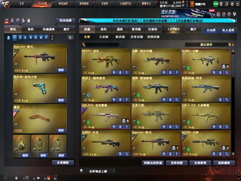 幻神7皮⚡星神三件套⚡幻兽全套⚡冠军柯尔特⚡满配手枪⚡G36c幻影⚡qbz三件套⚡传说梦魔⚡星际战将