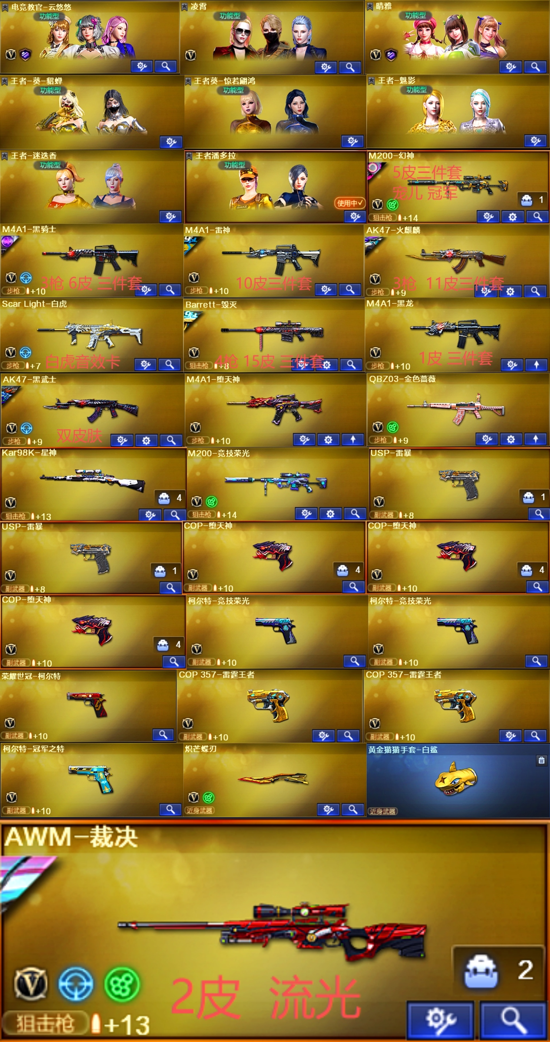 账号开挂追责 后台看的一清二楚!!!! 不要有侥幸心理 开挂是犯罪行为!!!! 退排位 永久拉黑;USP-雷暴,荣耀世冠-柯尔特,柯尔特-冠军之特,炽芒蝶刃,电竞教官-云悠悠,晴雅,QBZ03-金色蔷薇,