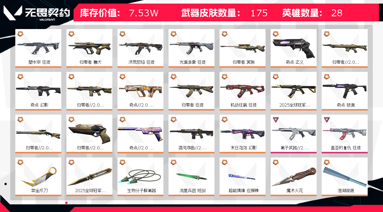 • 皮肤资产价值: 75290