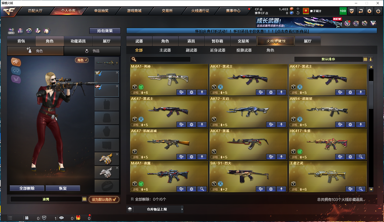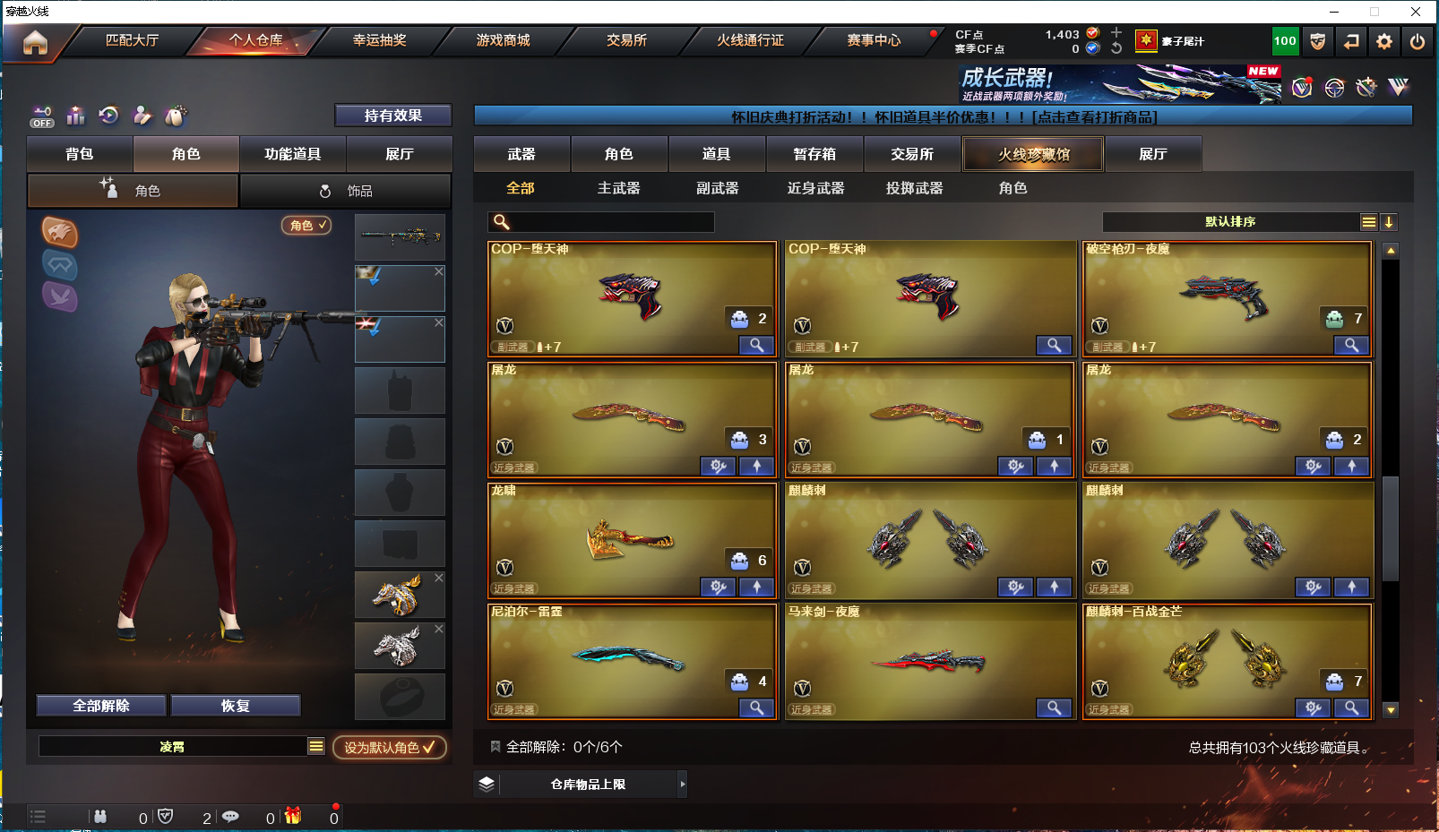 首页 > 租号大厅 > 穿越火线 > 电信区/江西一区 > 爆破生化号|五盘九烈两炼狱|夜魔套装|雷神黑骑士毁灭音效卡|破空枪刃堕天神cop|雷霆夜魔投掷套|