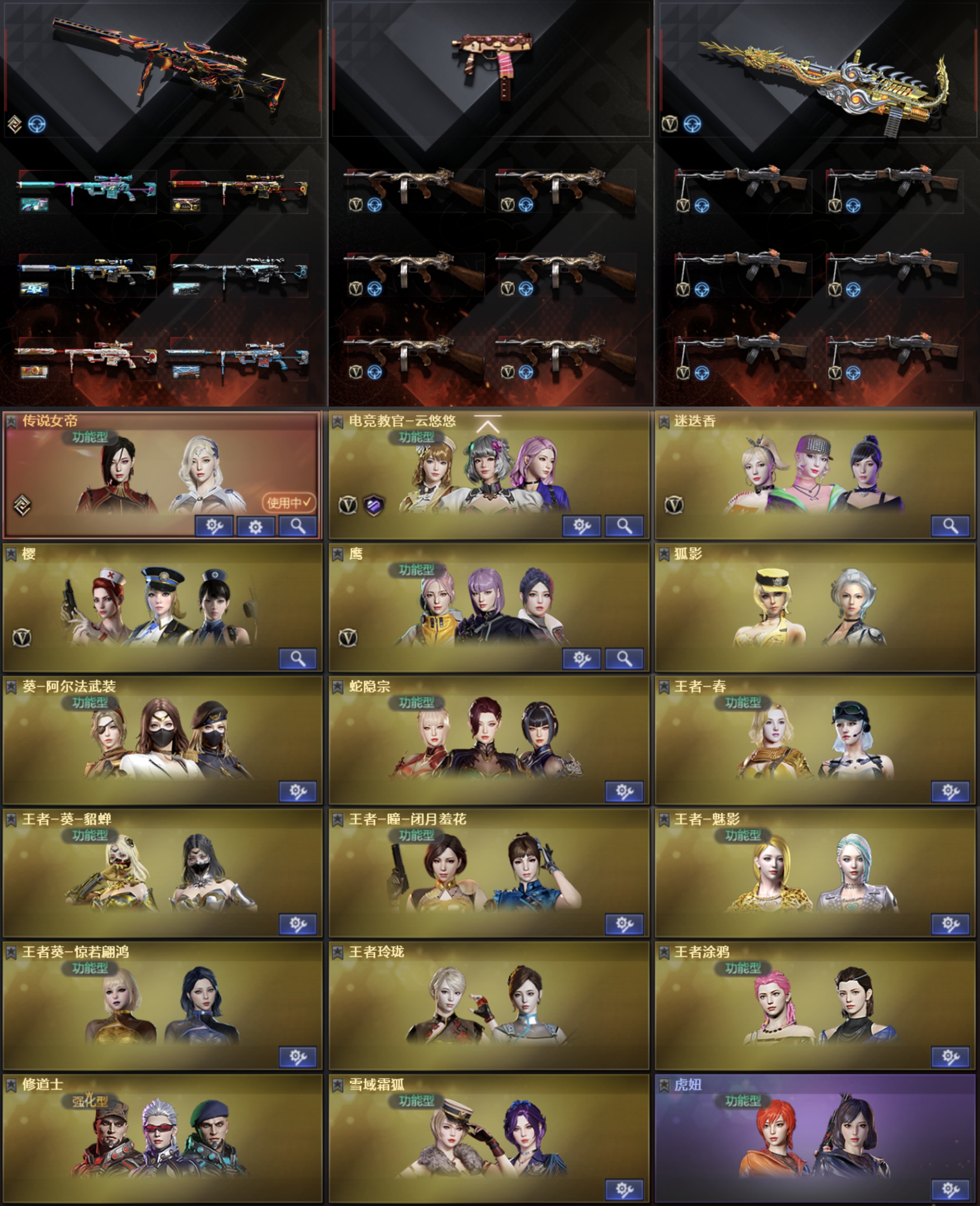 【极品生爆双全号】女帝幻神三件套8皮⭐星神三件套3皮⭐裁决三件套2皮⭐传说幽瞳⭐G36C⭐白虎三件套
