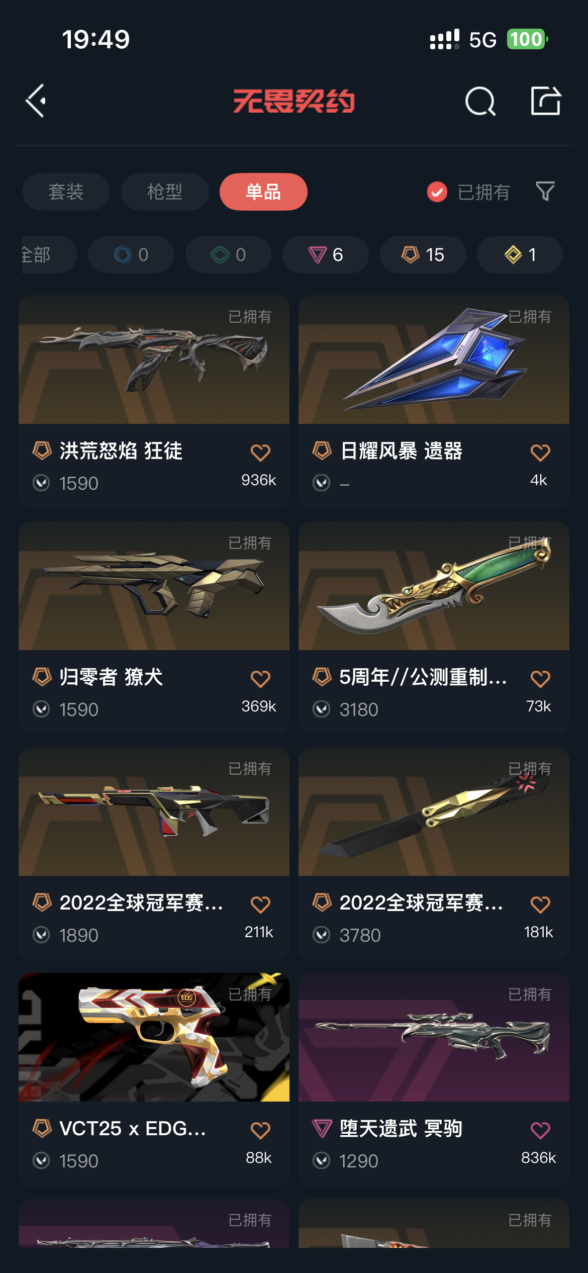 • 传奇数量: 15