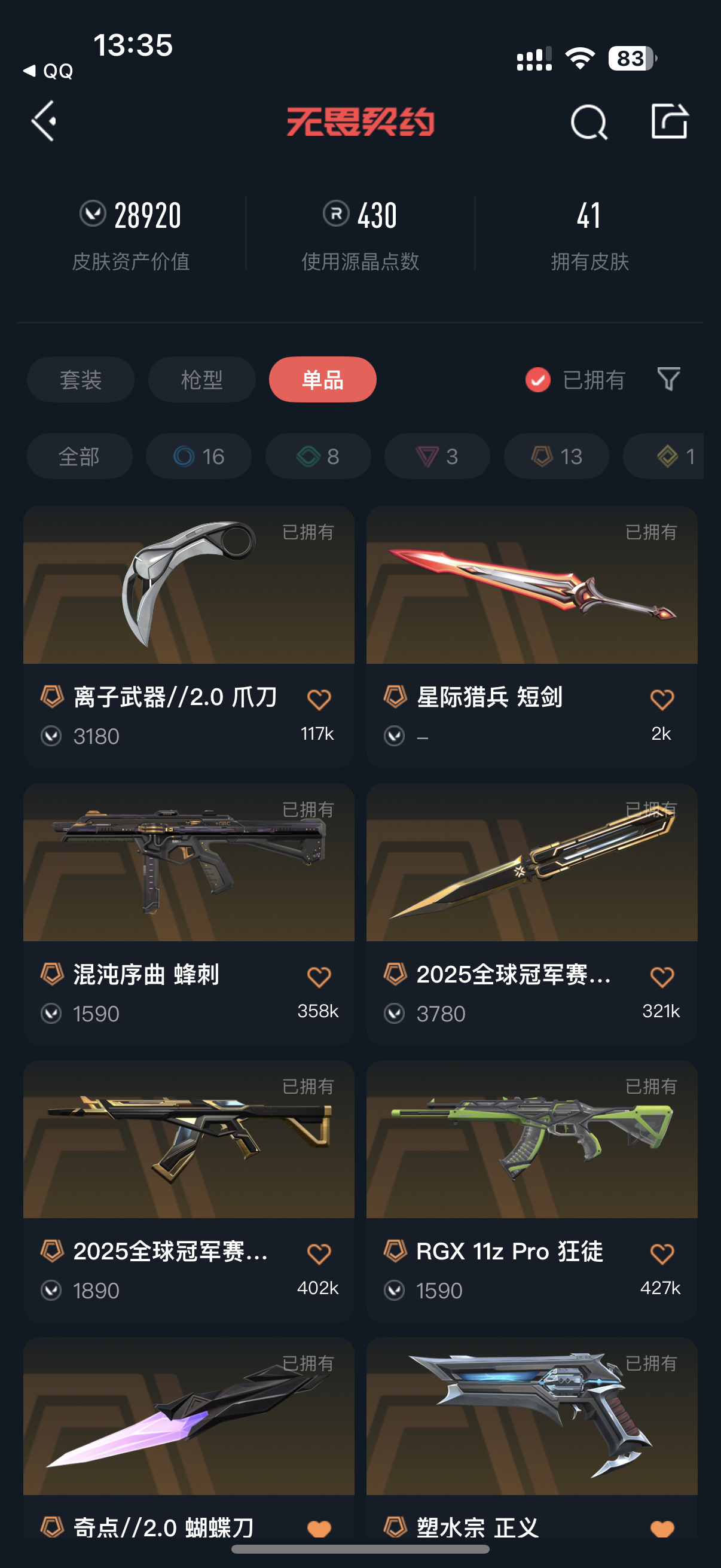 首页 > 租号大厅 > 无畏契约-wegame > wegame/wegame > 3W库存🔥25冠军套装🔥离子爪刀🔥奇点蝴蝶刀🔥全单买
